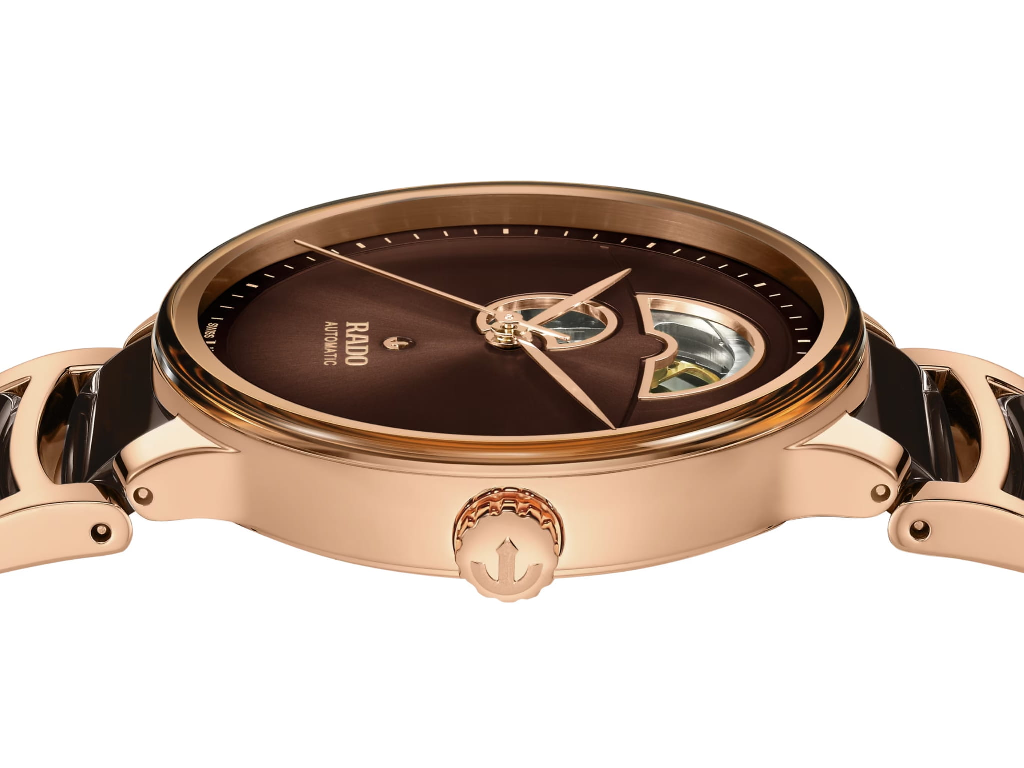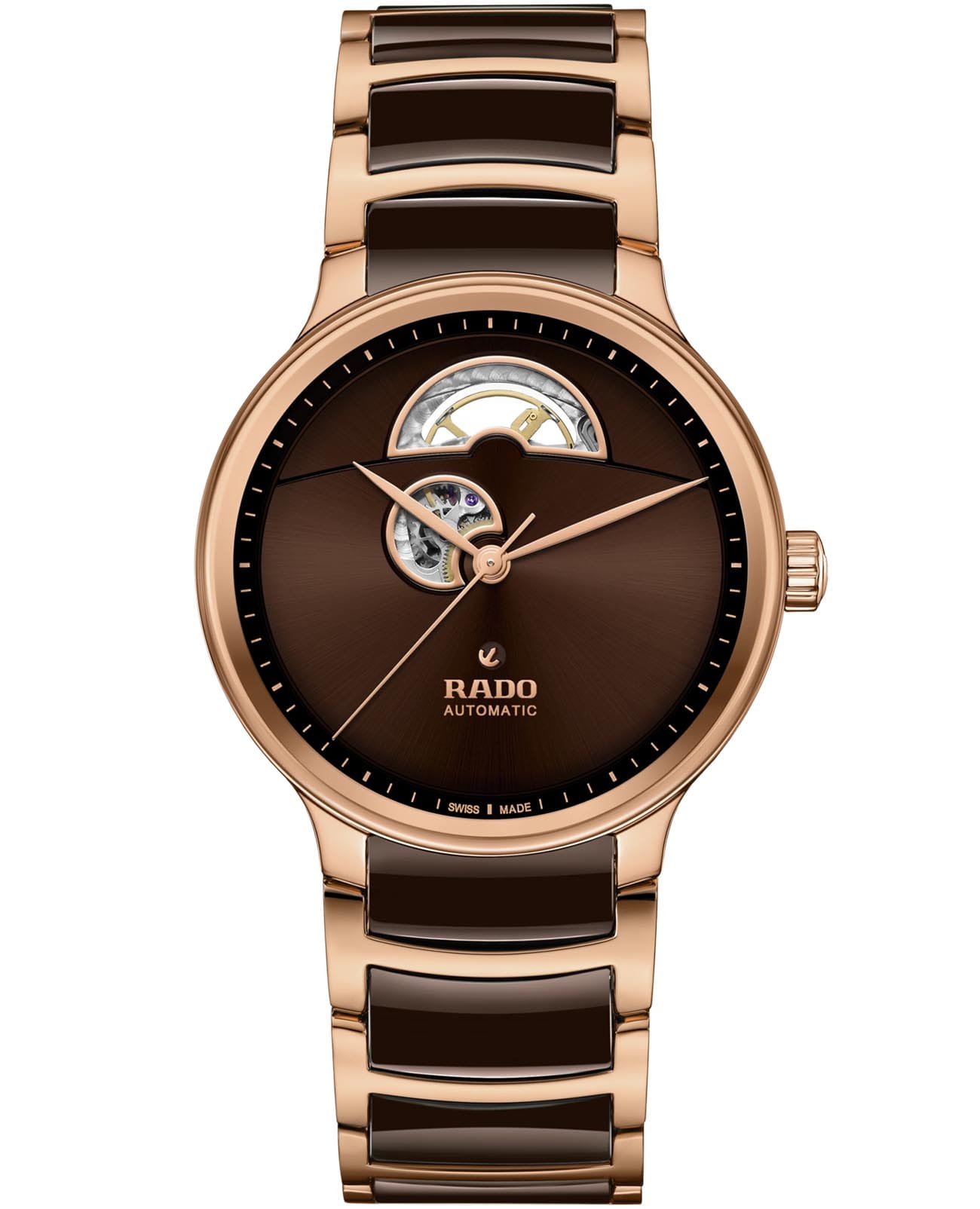 Швейцарские механические часы-скелетоны с автоподзаводом Rado Centrix Automatic Open Heart R30013302. Корпус часов изготовлен из нержавеющей стали с PVD-покрытиемPVDУльтратонкое покрытие наносится в технике вакуумного напыления, сочетает в себе нитрид титана особой прочности со слоем золота или оксида хрома. Несёт в себе декоративную или защитную функцию.. Браслет из стали PVD-покрытиемPVDУльтратонкое покрытие наносится в технике вакуумного напыления, сочетает в себе нитрид титана особой прочности со слоем золота или оксида хрома. Несёт в себе декоративную или защитную функцию. и высокотехнологичной керамикиВысокотехнологичная керамикаИнновационный запатентованный Rado материал с гладкой или матовой поверхностью. Керамика за счёт кристаллической структуры обладает повышенной устойчивостью от возникновения царапин. Материал способен принимать температуру тела человека, обеспечивая невероятный комфорт при ношении. на раскладной застёжкеРаскладная застёжкаТакой тип застёжки используется только на браслетах из металла. Она никогда не раскрывается полностью, происходит разделение на 2 и более частей. Раскладывающая застёжка снизит вероятность потери часов к минимуму.. Сапфировое стеклоСапфировое стеклоПрочный и надёжный материал из кристалла сапфира синтетического происхождения, характеризующийся особой твёрдостью и устойчивостью к царапинам и повреждениям. устойчивое к мелким механическим повреждениям. Класс водозащиты: 50 метров, позволит защитить корпус от случайных брызг или капель дождя.