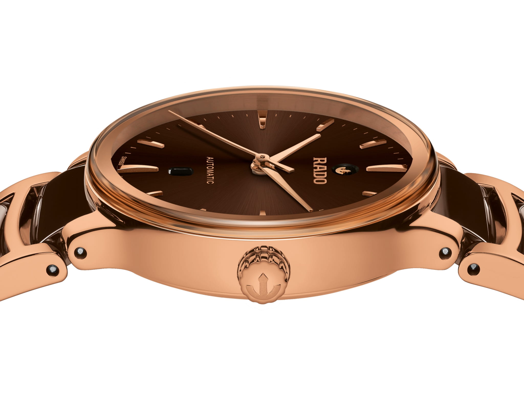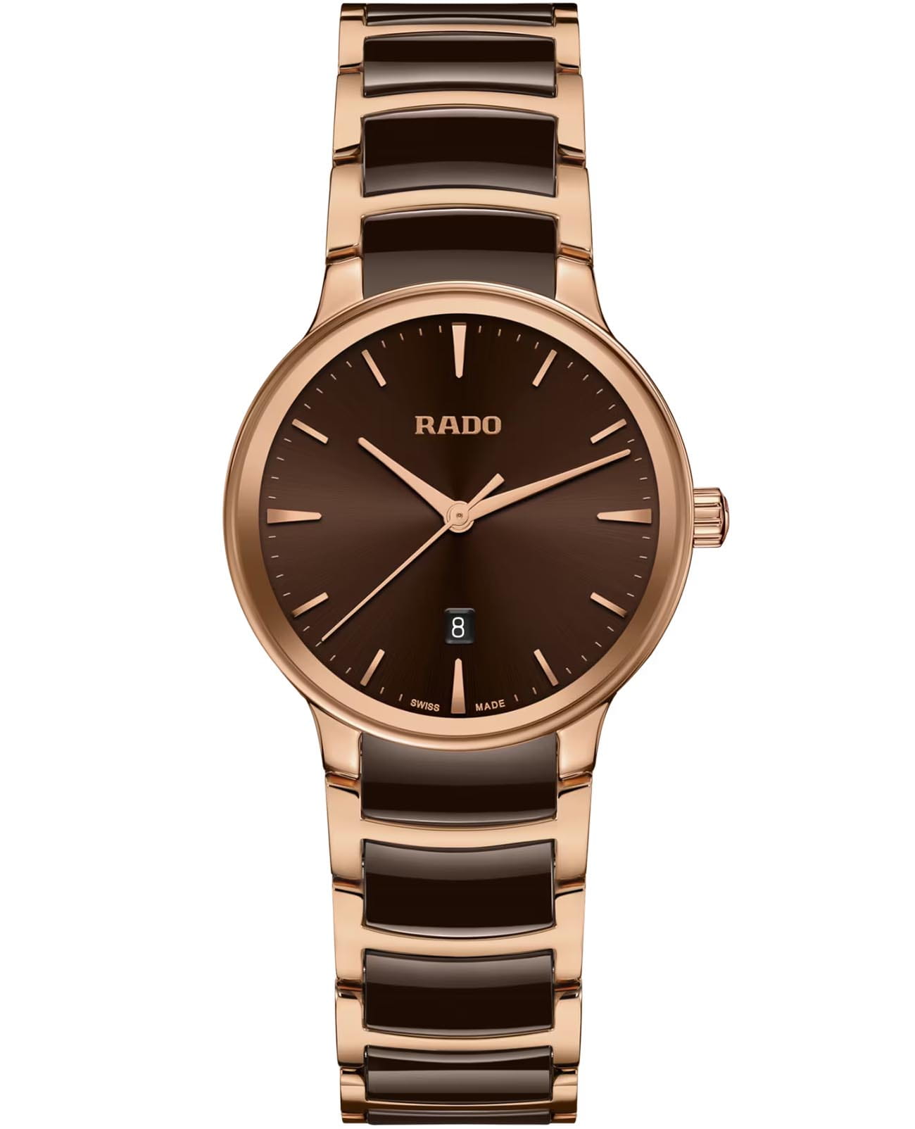 Швейцарские женские часы с надёжным кварцевым механизмом Rado Centrix R30024302. Корпус часов изготовлен из нержавеющей стали с PVD-покрытиемPVDУльтратонкое покрытие наносится в технике вакуумного напыления, сочетает в себе нитрид титана особой прочности со слоем золота или оксида хрома. Несёт в себе декоративную или защитную функцию.. Браслет из стали и высокотехнологичной керамикиВысокотехнологичная керамикаИнновационный запатентованный Rado материал с гладкой или матовой поверхностью. Керамика за счёт кристаллической структуры обладает повышенной устойчивостью от возникновения царапин. Материал способен принимать температуру тела человека, обеспечивая невероятный комфорт при ношении. на раскладной застёжкеРаскладная застёжкаТакой тип застёжки используется только на браслетах из металла. Она никогда не раскрывается полностью, происходит разделение на 2 и более частей. Раскладывающая застёжка снизит вероятность потери часов к минимуму.. Сапфировое стеклоСапфировое стеклоПрочный и надёжный материал из кристалла сапфира синтетического происхождения, характеризующийся особой твёрдостью и устойчивостью к царапинам и повреждениям. устойчивое к мелким механическим повреждениям. Класс водозащиты: 50 метров, позволит защитить корпус от случайных брызг или капель дождя. Окошко даты находится в положении 6 часов.