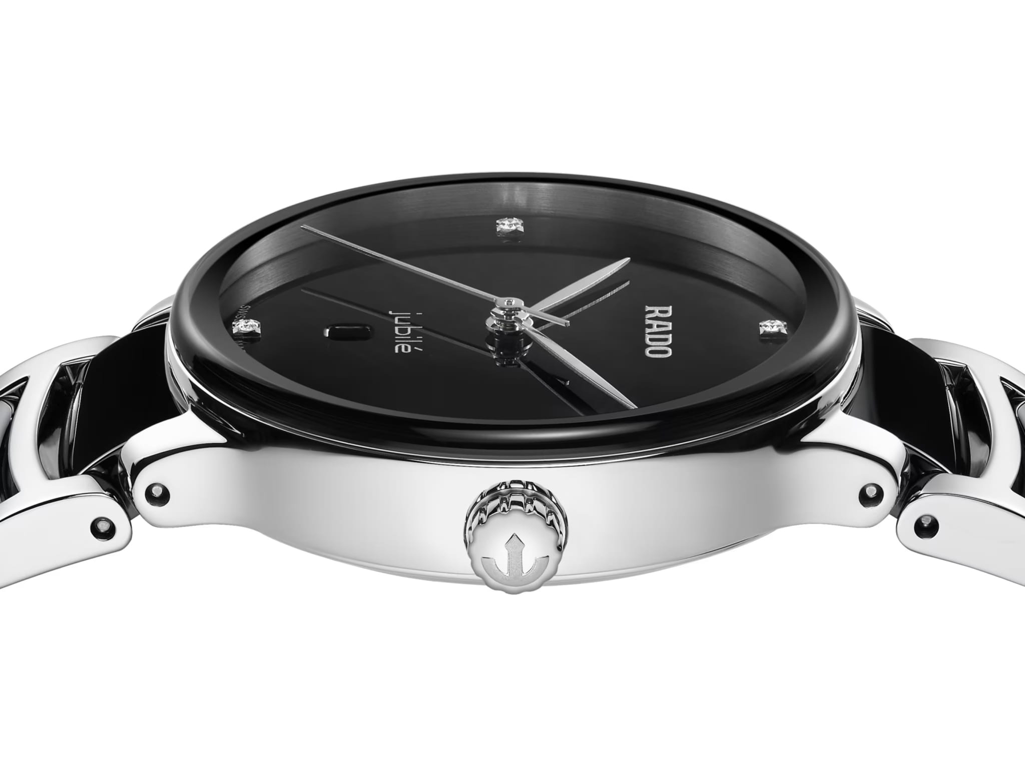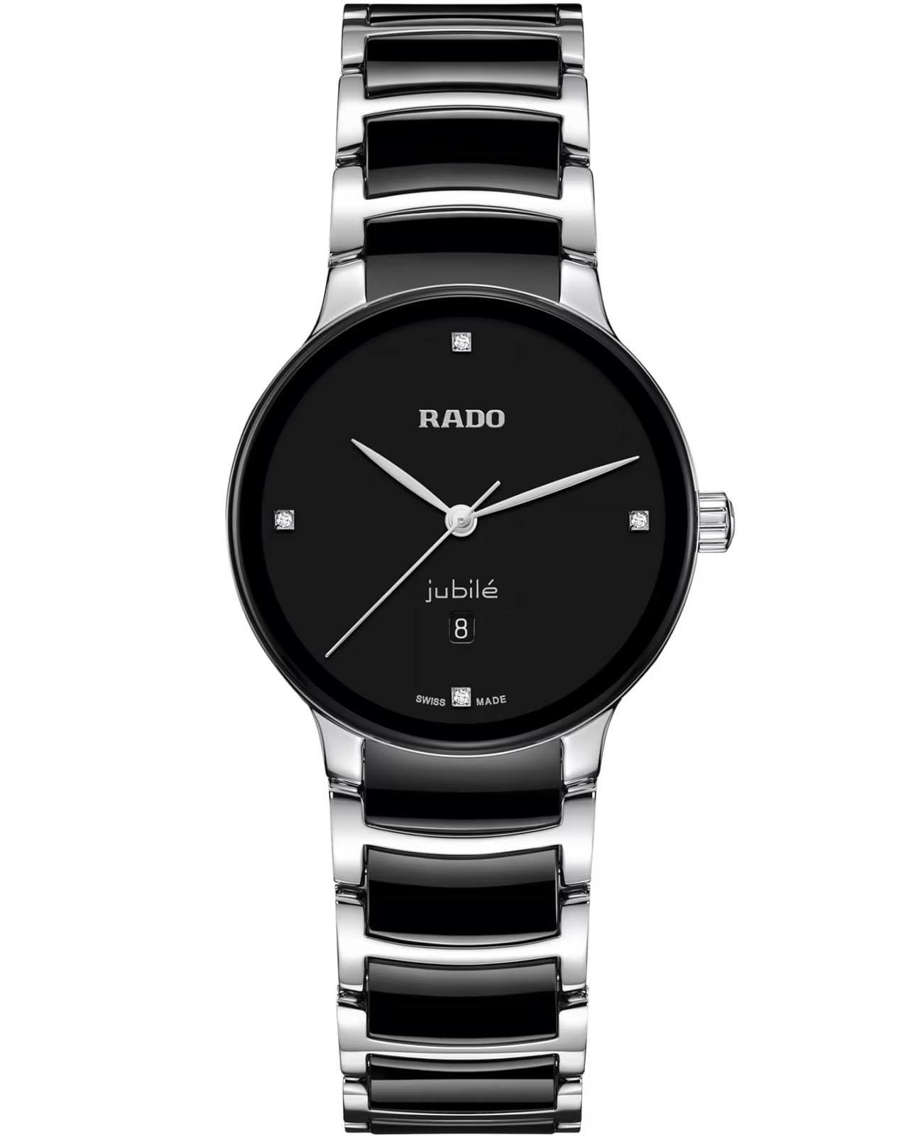 Швейцарские женские часы с надёжным кварцевым механизмом Rado Centrix Diamonds R30026712. Корпус часов изготовлен из нержавеющей стали. Браслет из стали и высокотехнологичной керамикиВысокотехнологичная керамикаИнновационный запатентованный Rado материал с гладкой или матовой поверхностью. Керамика за счёт кристаллической структуры обладает повышенной устойчивостью от возникновения царапин. Материал способен принимать температуру тела человека, обеспечивая невероятный комфорт при ношении. на раскладной застёжкеРаскладная застёжкаТакой тип застёжки используется только на браслетах из металла. Она никогда не раскрывается полностью, происходит разделение на 2 и более частей. Раскладывающая застёжка снизит вероятность потери часов к минимуму.. Сапфировое стеклоСапфировое стеклоПрочный и надёжный материал из кристалла сапфира синтетического происхождения, характеризующийся особой твёрдостью и устойчивостью к царапинам и повреждениям. устойчивое к мелким механическим повреждениям. Класс водозащиты: 50 метров, позволит защитить корпус от случайных брызг или капель дождя. Окошко даты находится в положении 6 часов.
