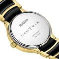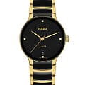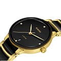 Швейцарские женские механические часы с автоподзаводом Rado Centrix R30039712. Сапфировое стеклоСапфировое стеклоПрочный и надёжный материал из кристалла сапфира синтетического происхождения, характеризующийся особой твёрдостью и устойчивостью к царапинам и повреждениям. устойчивое к мелким механическим повреждениям. Корпус часов изготовлен из нержавеющей стали с PVD-покрытиемPVDУльтратонкое покрытие наносится в технике вакуумного напыления, сочетает в себе нитрид титана особой прочности со слоем золота или оксида хрома. Несёт в себе декоративную или защитную функцию.. БезельБезельВнешний ободок, закрепляющий стекло. В спортивных часах так называется поворотное кольцо с делениями на циферблате, выполняет роль таймера – замеряет отрезки времени на шкале. Неподвижный безель – элемент декора. Однонаправленно вращающийся безель на дайверских часах позволяет фиксировать моменты погружения и выныривания на поверхность. из керамики. Окошко даты находится в положении 6 часов. Циферблат украшен бриллиантами. Класс водозащиты: 30 метров, позволит защитить корпус от случайных брызг или капель дождя. Браслет нержавеющей стали с PVD-покрытиемPVDУльтратонкое покрытие наносится в технике вакуумного напыления, сочетает в себе нитрид титана особой прочности со слоем золота или оксида хрома. Несёт в себе декоративную или защитную функцию. и высокотехнологичной плазменной керамикиВысокотехнологичная плазменная керамикаИнновационный материал, технология запатентована. Выплавление керамики осуществляется в печи при 20 000 °C, белоснежный материал под воздействием ультравысокой температуры приобретает уникальный блеск, присущий металлам. на раскладной застёжкеРаскладная застёжкаТакой тип застёжки используется только на браслетах из металла. Она никогда не раскрывается полностью, происходит разделение на 2 и более частей. Раскладывающая застёжка снизит вероятность потери часов к минимуму..