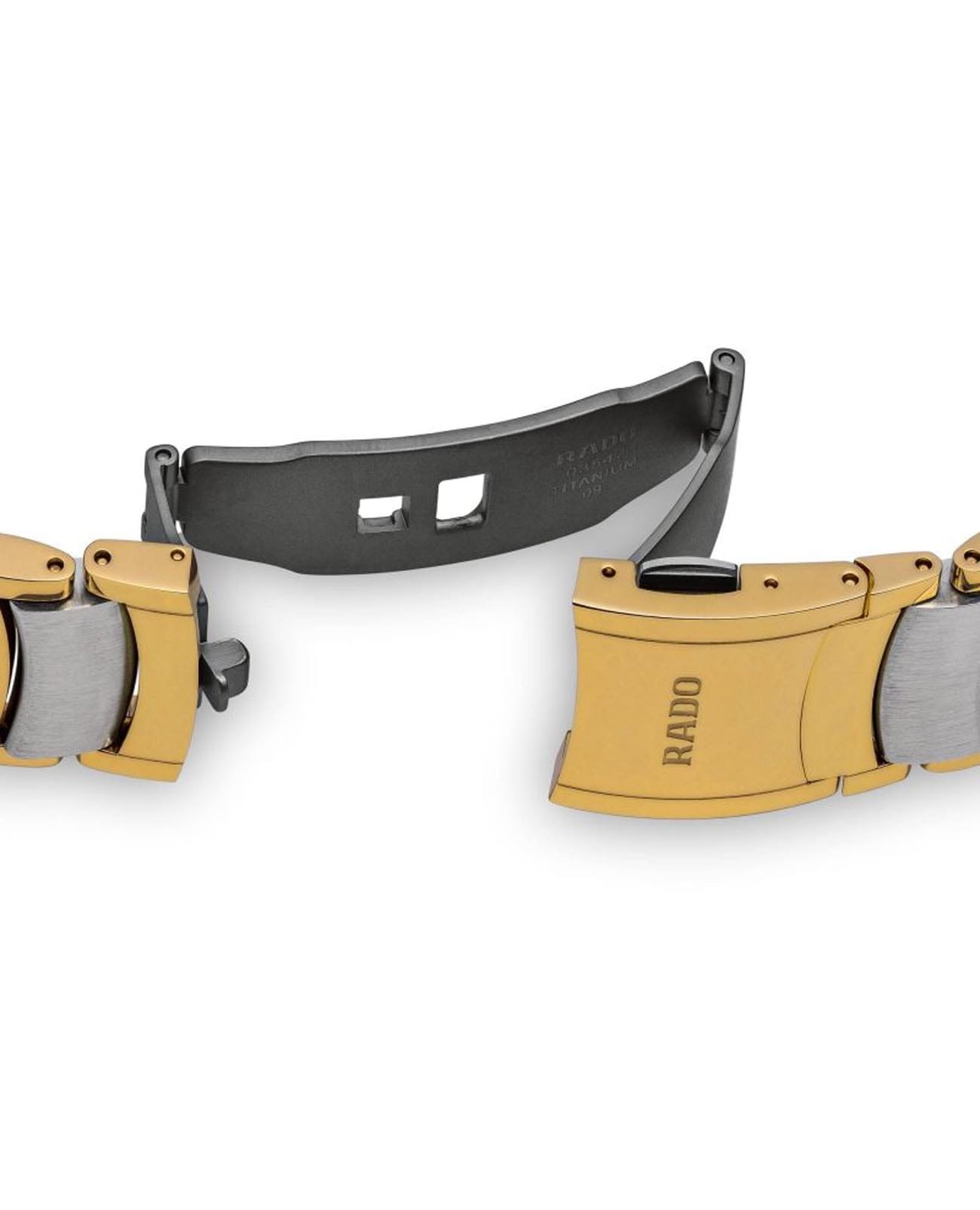 Мужские швейцарские часы с автоподзаводом Rado Centrix Automatic Diamonds R30079703. Сапфировое стеклоСапфировое стеклоПрочный и надёжный материал из кристалла сапфира синтетического происхождения, характеризующийся особой твёрдостью и устойчивостью к царапинам и повреждениям. устойчивое к мелким механическим повреждениям. Стальной браслет на раскладной застёжкеРаскладная застёжкаТакой тип застёжки используется только на браслетах из металла. Она никогда не раскрывается полностью, происходит разделение на 2 и более частей. Раскладывающая застёжка снизит вероятность потери часов к минимуму.. Корпус и браслет часов изготовлены из нержавеющей стали с PVD-покрытиемPVDУльтратонкое покрытие наносится в технике вакуумного напыления, сочетает в себе нитрид титана особой прочности со слоем золота или оксида хрома. Несёт в себе декоративную или защитную функцию.. Окошко даты находится в положении 3 часа. Циферблат инкрустирован бриллиантами. Класс водозащиты: 30 метров, позволит защитить корпус от случайных брызг или капель дождя. Стрелки с люминесцентным покрытиемЛюминесцентное покрытиеПозволяет считывать показания времени в темноте. Производители наносят на стрелки, часовые индексы, безель или поверхность циферблата светонакопительный состав, дающий холодное свечение..