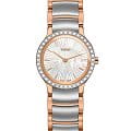 Женские швейцарские часы с кварцевым механизмом Rado Centrix R30218923. Сапфировое стеклоСапфировое стеклоПрочный и надёжный материал из кристалла сапфира синтетического происхождения, характеризующийся особой твёрдостью и устойчивостью к царапинам и повреждениям. устойчивое к мелким механическим повреждениям. Стальной браслет на раскладной застёжкеРаскладная застёжкаТакой тип застёжки используется только на браслетах из металла. Она никогда не раскрывается полностью, происходит разделение на 2 и более частей. Раскладывающая застёжка снизит вероятность потери часов к минимуму.. Корпус и браслет часов изготовлены из нержавеющей стали с частичным PVD-покрытиемPVDУльтратонкое покрытие наносится в технике вакуумного напыления, сочетает в себе нитрид титана особой прочности со слоем золота или оксида хрома. Несёт в себе декоративную или защитную функцию.. Класс водозащиты: 30 метров, позволит защитить корпус от случайных брызг или капель дождя. БезельБезельВнешний ободок, закрепляющий стекло. В спортивных часах так называется поворотное кольцо с делениями на циферблате, выполняет роль таймера – замеряет отрезки времени на шкале. Неподвижный безель – элемент декора. Однонаправленно вращающийся безель на дайверских часах позволяет фиксировать моменты погружения и выныривания на поверхность. инкрустирован бриллиантами.