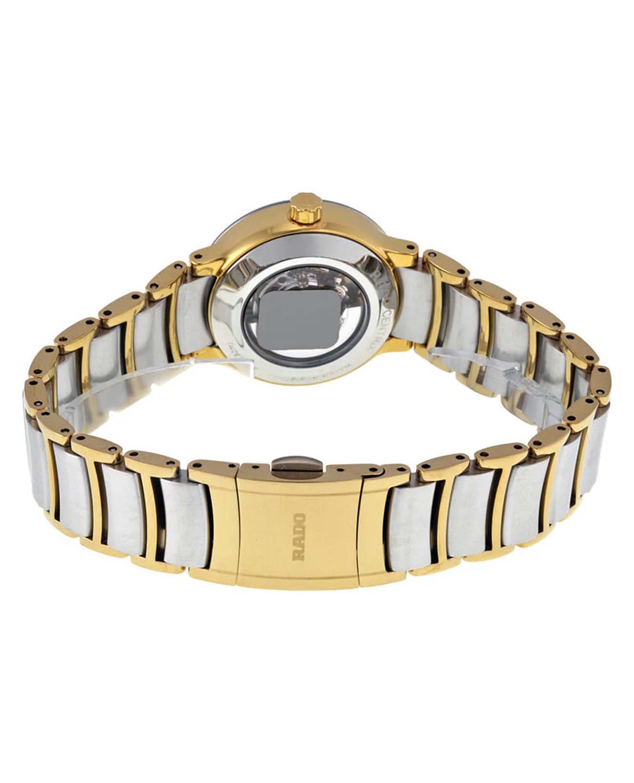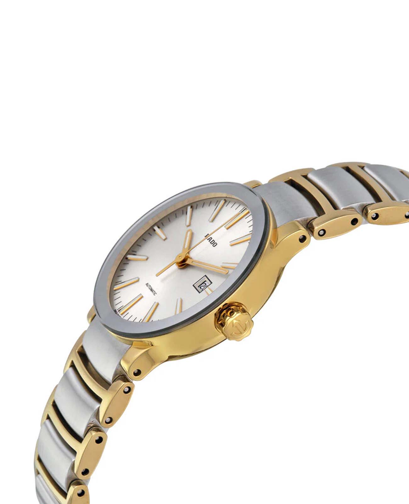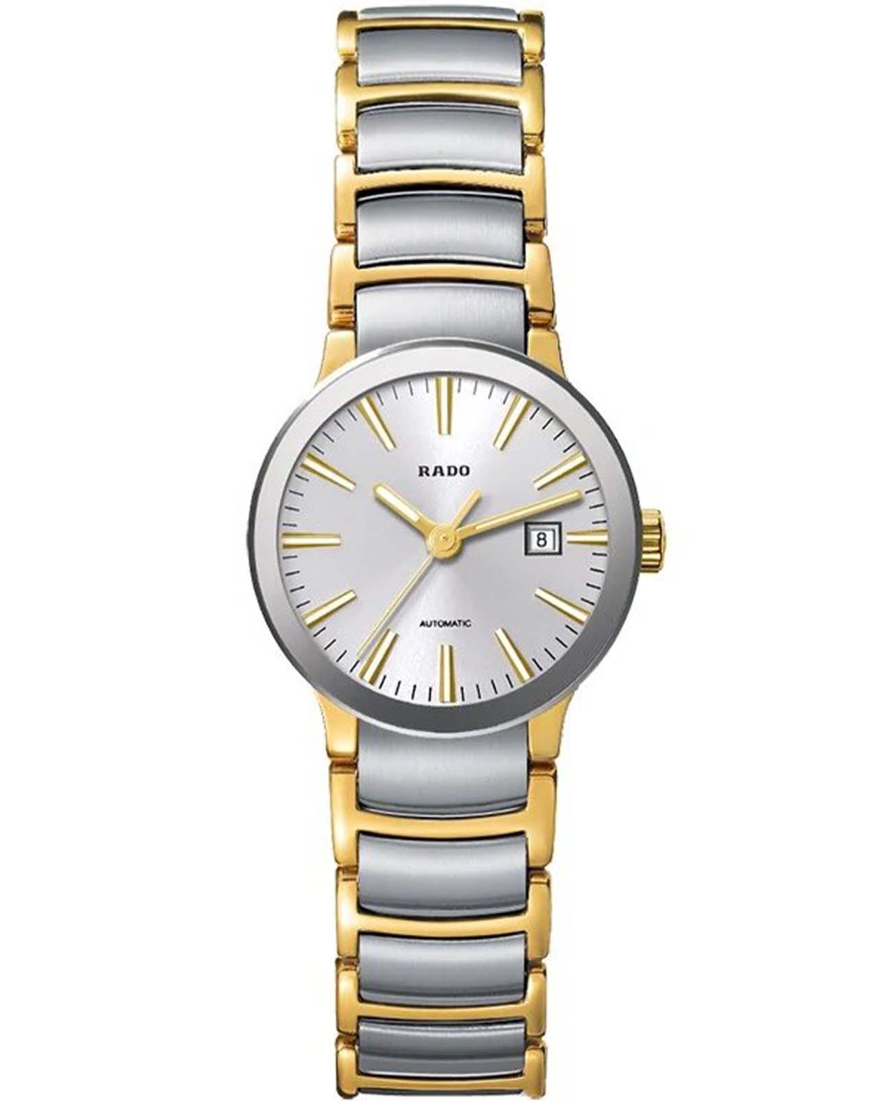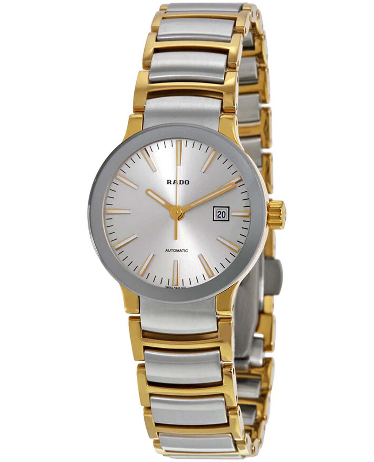 Швейцарские женские механические часы с автоподзаводом Rado Centrix R30530103. Корпус часов изготовлен из нержавеющей стали с PVD-покрытиемPVDУльтратонкое покрытие наносится в технике вакуумного напыления, сочетает в себе нитрид титана особой прочности со слоем золота или оксида хрома. Несёт в себе декоративную или защитную функцию.. Сапфировое стеклоСапфировое стеклоПрочный и надёжный материал из кристалла сапфира синтетического происхождения, характеризующийся особой твёрдостью и устойчивостью к царапинам и повреждениям. устойчивое к мелким механическим повреждениям. Окошко даты находится в положении 3 часа. Стрелки с люминесцентным покрытиемЛюминесцентное покрытиеПозволяет считывать показания времени в темноте. Производители наносят на стрелки, часовые индексы, безель или поверхность циферблата светонакопительный состав, дающий холодное свечение.. Класс водозащиты: 30 метров, позволит защитить корпус от случайных брызг или капель дождя. Браслет нержавеющей стали с PVD-покрытиемPVDУльтратонкое покрытие наносится в технике вакуумного напыления, сочетает в себе нитрид титана особой прочности со слоем золота или оксида хрома. Несёт в себе декоративную или защитную функцию. на раскладной застёжкеРаскладная застёжкаТакой тип застёжки используется только на браслетах из металла. Она никогда не раскрывается полностью, происходит разделение на 2 и более частей. Раскладывающая застёжка снизит вероятность потери часов к минимуму..