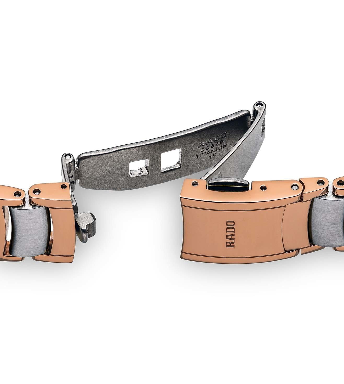Женские швейцарские кварцевые часы из коллекции Centrix являют собой современный элемент роскошного стиля. Аксессуар в коричневом цвете станет достойным дополнением к образу. Надёжный корпус из хирургической стали 316L с PVD-покрытиемPVDУльтратонкое покрытие наносится в технике вакуумного напыления, сочетает в себе нитрид титана особой прочности со слоем золота или оксида хрома. Несёт в себе декоративную или защитную функцию.. Браслет имеет вставки из высокотехнологичной керамикиВысокотехнологичная керамикаИнновационный запатентованный Rado материал с гладкой или матовой поверхностью. Керамика за счёт кристаллической структуры обладает повышенной устойчивостью от возникновения царапин. Материал способен принимать температуру тела человека, обеспечивая невероятный комфорт при ношении.. Износоустойчивое PVD-покрытиеPVDУльтратонкое покрытие наносится в технике вакуумного напыления, сочетает в себе нитрид титана особой прочности со слоем золота или оксида хрома. Несёт в себе декоративную или защитную функцию.. Сапфировое стеклоСапфировое стеклоПрочный и надёжный материал из кристалла сапфира синтетического происхождения, характеризующийся особой твёрдостью и устойчивостью к царапинам и повреждениям.. Апертура даты. Диаметр корпуса: 28 мм.Водозащита: 30 метров, позволит защитить корпус от случайных брызг или капель дождя Производство и сборка: Швейцария.