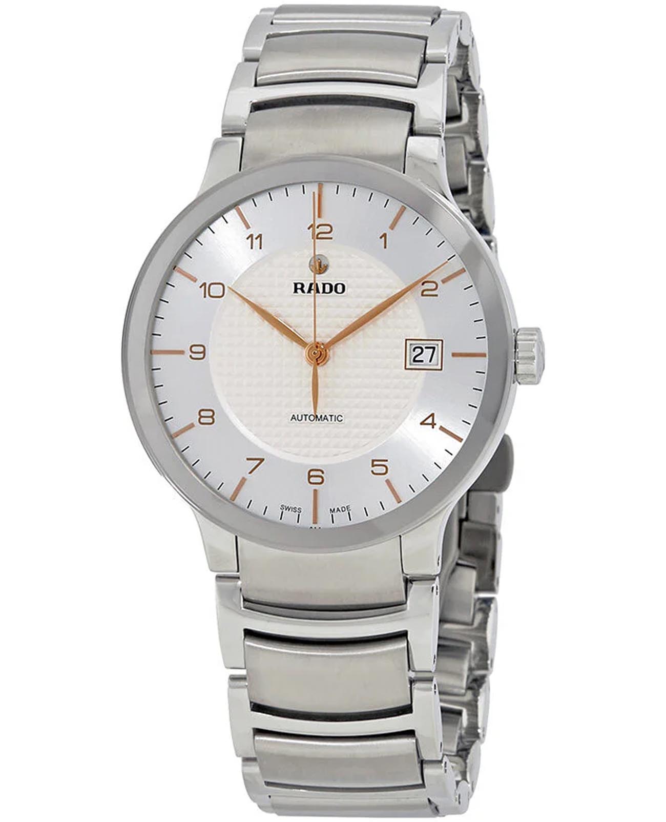 Мужские механические швейцарские часы с автоподзаводом Rado Centrix R30939143. Сапфировое стеклоСапфировое стеклоПрочный и надёжный материал из кристалла сапфира синтетического происхождения, характеризующийся особой твёрдостью и устойчивостью к царапинам и повреждениям. устойчивое к мелким механическим повреждениям. Корпус часов изготовлен из нержавеющей стали. Окошко даты находится в положении 3 часа. Класс водозащиты: 30 метров, позволит защитить корпус от случайных брызг или капель дождя. Браслет из стали на раскладной застёжкеРаскладная застёжкаТакой тип застёжки используется только на браслетах из металла. Она никогда не раскрывается полностью, происходит разделение на 2 и более частей. Раскладывающая застёжка снизит вероятность потери часов к минимуму..