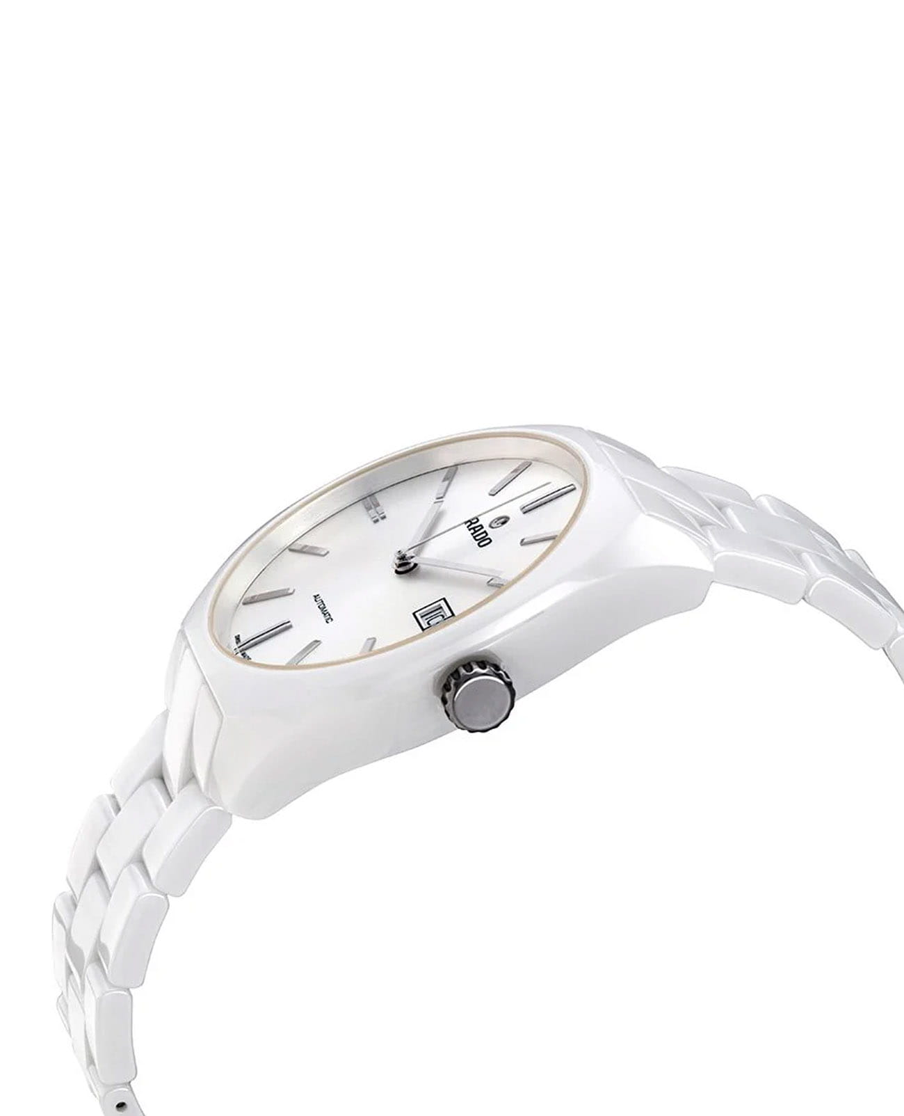Мужские механические швейцарские часы Rado D-Star R31507107. Сапфировое стеклоСапфировое стеклоПрочный и надёжный материал из кристалла сапфира синтетического происхождения, характеризующийся особой твёрдостью и устойчивостью к царапинам и повреждениям. устойчивое к мелким механическим повреждениям. Корпус часов изготовлен из высокотехнологичной керамикиВысокотехнологичная керамикаИнновационный запатентованный Rado материал с гладкой или матовой поверхностью. Керамика за счёт кристаллической структуры обладает повышенной устойчивостью от возникновения царапин. Материал способен принимать температуру тела человека, обеспечивая невероятный комфорт при ношении.. Окошко даты находится в положении 3 часа. Класс водозащиты: 30 метров, позволит защитить корпус от случайных брызг или капель дождя. Браслет из высокотехнологичной керамикиВысокотехнологичная керамикаИнновационный запатентованный Rado материал с гладкой или матовой поверхностью. Керамика за счёт кристаллической структуры обладает повышенной устойчивостью от возникновения царапин. Материал способен принимать температуру тела человека, обеспечивая невероятный комфорт при ношении. на раскладной застёжкеРаскладная застёжкаТакой тип застёжки используется только на браслетах из металла. Она никогда не раскрывается полностью, происходит разделение на 2 и более частей. Раскладывающая застёжка снизит вероятность потери часов к минимуму..