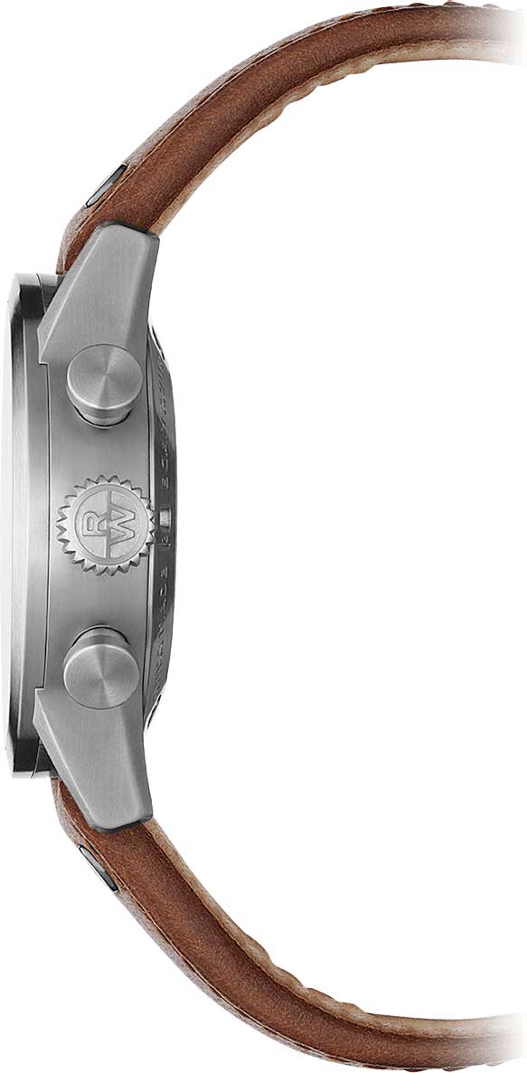 Запас хода составляет 56 часов, а циферблат с арабскими цифрами защищен прочным сапфировым стекломСапфировое стеклоПрочный и надёжный материал из кристалла сапфира синтетического происхождения, характеризующийся особой твёрдостью и устойчивостью к царапинам и повреждениям.. Завинчивающаяся задняя крышка украшена выгравированным изображением пропеллера, что подчеркивает авиационную тематику. Завинчивающаяся заводная головка с логотипом RW и ремешок из натуральной кожи с раскладной застёжкойРаскладная застёжкаТакой тип застёжки используется только на браслетах из металла. Она никогда не раскрывается полностью, происходит разделение на 2 и более частей. Раскладывающая застёжка снизит вероятность потери часов к минимуму., завершают этот стильный аксессуар.