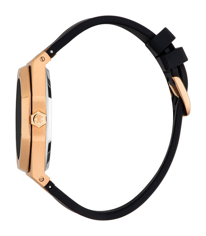 ROBERTO CAVALLI Uomo Ottagono RC5G102P0025 — стильные итальянские часы сочетающие в себе элегантность и современный функционал. Корпус диаметром 42 мм выполнен из нержавеющей стали с PVD-покрытиемPVDУльтратонкое покрытие наносится в технике вакуумного напыления, сочетает в себе нитрид титана особой прочности со слоем золота или оксида хрома. Несёт в себе декоративную или защитную функцию., толщина корпуса составляет 12 мм, что придает модели выразительный внешний вид и надежную защиту от внешних воздействий. Циферблат, искусно оформленный фирменными элементами Roberto Cavalli, притягивает взгляд и подчеркивает ваш безупречный вкус. Часы оснащены кварцевым механизмом, также обладают функцией отображения даты, что делает их удобными для ежедневного использования. Минеральное стеклоМинеральное стеклоМинеральное стекло представляет собой искусственно выращенный минерал кварца. Такое стекло отличается особой устойчивостью к повреждениям и царапинам. Уступает по некоторым качествам сапфировому стеклу. защищает часы от царапин. Водозащита 30 метров позволит защитить корпус от случайных брызг или капель дождя. Силиконовый ремешок на стандартной застёжке обеспечивает комфортное ношение. Стрелки и метки с люминесцентным покрытиемЛюминесцентное покрытиеПозволяет считывать показания времени в темноте. Производители наносят на стрелки, часовые индексы, безель или поверхность циферблата светонакопительный состав, дающий холодное свечение. обеспечивают отличную читаемость в любое время суток.