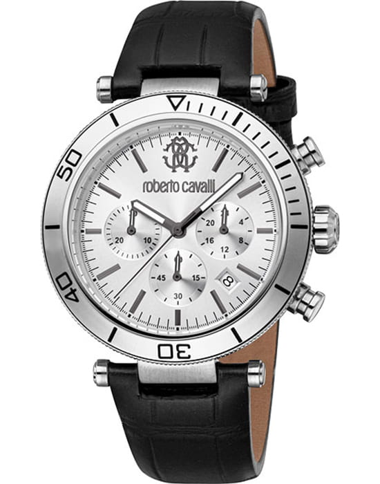 Roberto Cavalli Ritmo RC5G128L0015 — мужская кварцевая модель с ярко выраженным спортивным стилем и практичным функционалом, сочетающая строгий дизайн и надёжность. Корпус диаметром 43 мм и толщиной 12 мм выполнен из нержавеющей стали, защищён прочным минеральным стекломМинеральное стеклоМинеральное стекло представляет собой искусственно выращенный минерал кварца. Такое стекло отличается особой устойчивостью к повреждениям и царапинам. Уступает по некоторым качествам сапфировому стеклу., устойчивым к повседневным повреждениям и сохраняющим хорошую читаемость циферблата. БезельБезельВнешний ободок, закрепляющий стекло. В спортивных часах так называется поворотное кольцо с делениями на циферблате, выполняет роль таймера – замеряет отрезки времени на шкале. Неподвижный безель – элемент декора. Однонаправленно вращающийся безель на дайверских часах позволяет фиксировать моменты погружения и выныривания на поверхность.. Водозащита 100 м делает часы надёжным спутником во время плавания и активного отдыха. Функциональность поддерживается индикаторами хронографаХронографФункция позволяет измерять отрезки времени с особой точностью: часы, минуты, секунды. Верным признаком хронографа является наличие на циферблате 3 дополнительных окошек-счётчиков. и даты, которые органично вписаны в оформление циферблата. Кожаный ремешок шириной 22 мм обеспечивает комфортную посадку и долговечность, а также гармонично завершает образ модели, которая одинаково хорошо подойдёт как для динамичного повседневного ритма, так и для более строгих ситуаций.