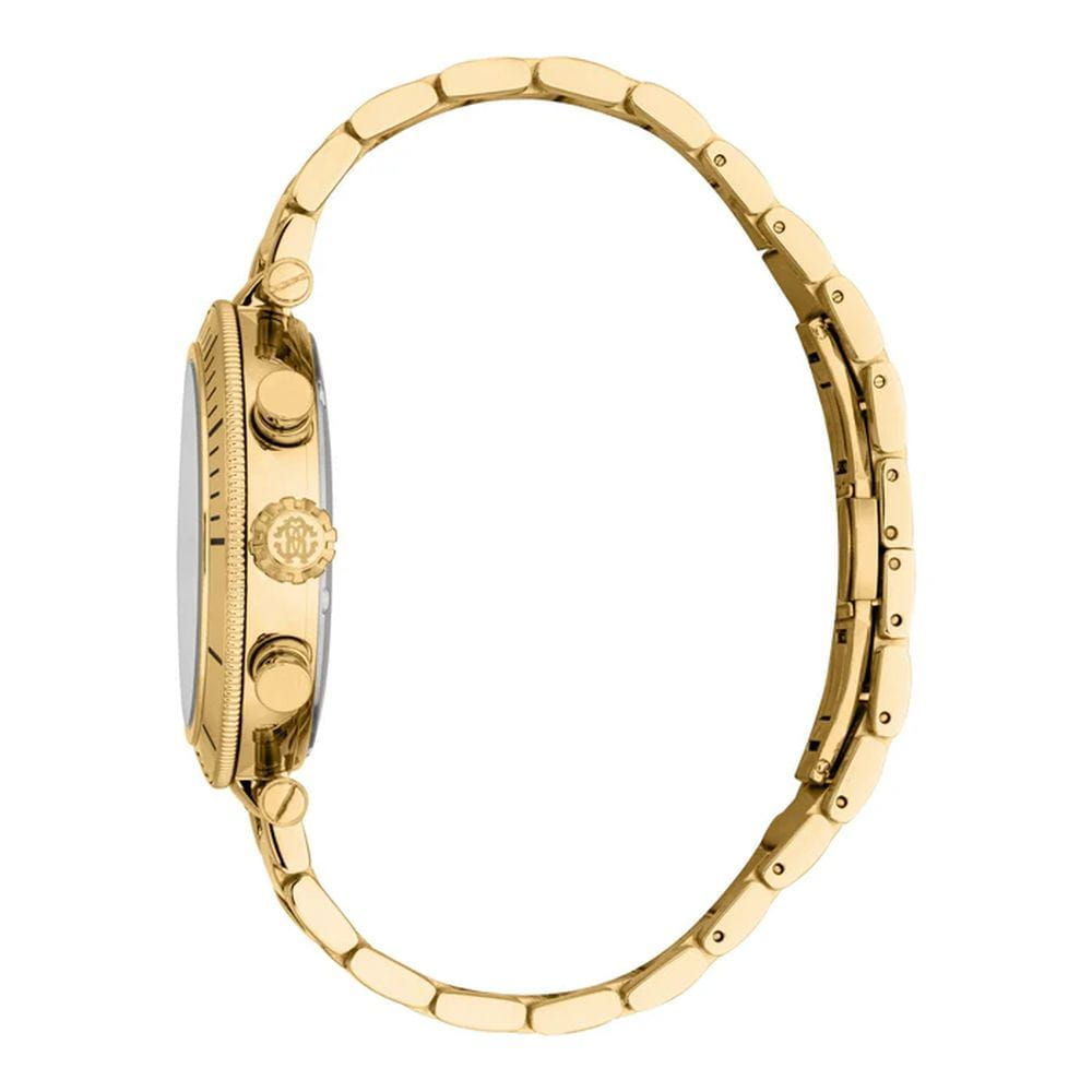 Roberto Cavalli Ritmo RC5G128M0065 — мужская кварцевая модель с ярко выраженным спортивным стилем и практичным функционалом, сочетающая строгий дизайн и надёжность. Корпус с PVD-покрытиемPVDУльтратонкое покрытие наносится в технике вакуумного напыления, сочетает в себе нитрид титана особой прочности со слоем золота или оксида хрома. Несёт в себе декоративную или защитную функцию. диаметром 43 мм и толщиной 12 мм выполнен из нержавеющей стали, защищён прочным минеральным стекломМинеральное стеклоМинеральное стекло представляет собой искусственно выращенный минерал кварца. Такое стекло отличается особой устойчивостью к повреждениям и царапинам. Уступает по некоторым качествам сапфировому стеклу., устойчивым к повседневным повреждениям и сохраняющим хорошую читаемость циферблата. Водозащита 100 м делает часы надёжным спутником во время плавания и активного отдыха. Функциональность поддерживается индикаторами хронографаХронографФункция позволяет измерять отрезки времени с особой точностью: часы, минуты, секунды. Верным признаком хронографа является наличие на циферблате 3 дополнительных окошек-счётчиков. и даты, которые органично вписаны в оформление циферблата. Стальной браслет с PVD-покрытиемPVDУльтратонкое покрытие наносится в технике вакуумного напыления, сочетает в себе нитрид титана особой прочности со слоем золота или оксида хрома. Несёт в себе декоративную или защитную функцию. на застёжке-бабочке с кнопкамиЗастёжка "бабочка"Такой вид застёжки дополняется предохранителями, помогающими избежать случайного раскрытия браслета. Обладают изящным исполнением. обеспечивает комфортную посадку и долговечность, а также гармонично завершает образ модели, которая одинаково хорошо подойдёт как для динамичного повседневного ритма, так и для более строгих ситуаций.