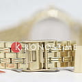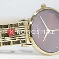 Циферблат бордового цвета дополнен золотистыми стрелками и метками, что подчёркивает изысканный стиль модели. Браслет из нержавеющей стали с PVD-покрытиемPVDУльтратонкое покрытие наносится в технике вакуумного напыления, сочетает в себе нитрид титана особой прочности со слоем золота или оксида хрома. Несёт в себе декоративную или защитную функцию. и раскладной застёжкойРаскладная застёжкаТакой тип застёжки используется только на браслетах из металла. Она никогда не раскрывается полностью, происходит разделение на 2 и более частей. Раскладывающая застёжка снизит вероятность потери часов к минимуму. обеспечивает комфортное ношение и долговечность.