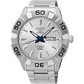 Современные японские наручные мужские часы. Механизм с автоподзаводом, калибр. Круглый корпус и браслет часов выполнены из  высокопрочной стали с антикоррозийными свойствами. Серебристый фон циферблата с люминесцентными метками и стрелками. Водонепроницаемость 10 ATM. Минеральное стекло Hardlex, устойчивое к появлению царапин.