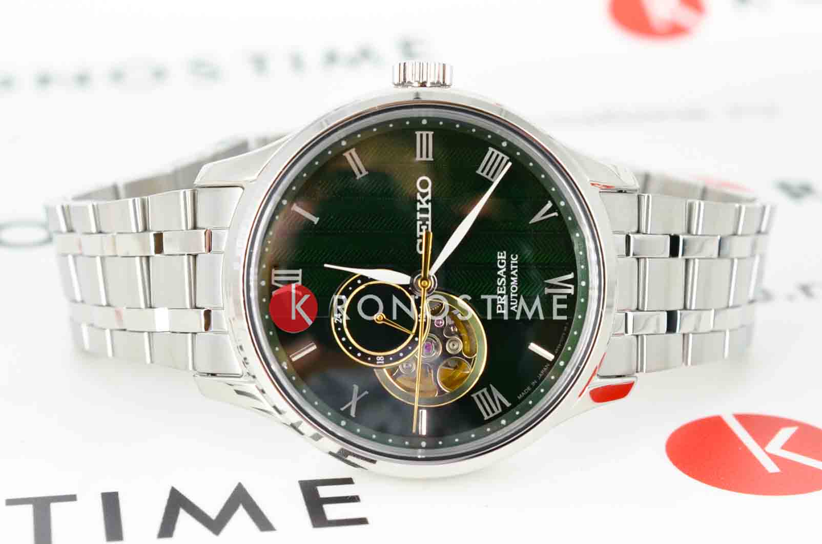 Модель Seiko SSA463J1 из коллекции Presage Japanese Garden — это элегантные автоматические часы, вдохновлённые эстетикой японских садов и философией дзен. Корпус диаметром 41,8 мм выполнен из нержавеющей стали с комбинированной полировкой и прозрачной задней крышкой. Водозащита составляет 30 метров — оптимально для повседневной носки. Фиксированный стальной безельБезельВнешний ободок, закрепляющий стекло. В спортивных часах так называется поворотное кольцо с делениями на циферблате, выполняет роль таймера – замеряет отрезки времени на шкале. Неподвижный безель – элемент декора. Однонаправленно вращающийся безель на дайверских часах позволяет фиксировать моменты погружения и выныривания на поверхность. подчёркивает гармоничные формы корпуса. Циферблат насыщенного зелёного цвета с тонкой текстурой напоминает волны гравия в японском саду. Открытое окно «open heart» на 9 часах позволяет наблюдать за работой механизма. В верхней части расположен индикатор запаса ходаШагомерШагоме́р или педо́метр — измерительный прибор для подсчёта количества сделанных шагов (или пар шагов) при ходьбе или беге.. Циферблат защищён двойным выпуклым сапфировым стекломСапфировое стеклоПрочный и надёжный материал из кристалла сапфира синтетического происхождения, характеризующийся особой твёрдостью и устойчивостью к царапинам и повреждениям. с внутренним антибликовым покрытиемАнтибликовое покрытиеСлой оксида металла в 0,13-0,3 микрон, благодаря которому стекло часов не бликует и не отражает свет. Антибликовое покрытие уменьшает отражение света в 10 раз, обеспечивая отличную читаемость показателей циферблата., устойчивым к царапинам и бликам. Внутри установлен автоматический калибр Seiko 4R39 с ручным подзаводом, функцией остановки секундной стрелки и запасом хода до 41 часа. Браслет выполнен из нержавеющей стали и оснащён удобной застёжкой «бабочка» с кнопкамиЗастёжка "бабочка"Такой вид застёжки дополняется предохранителями, помогающими избежать случайного раскрытия браслета. Обладают изящным исполнением. . Seiko SARY237 — это стильное и сбалансированное решение для ценителей классики с японским характером, где сочетаются глубокий дизайн и надёжная механика.