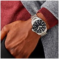 Мужские наручные часы Seiko SNE597P1 из коллекции Prospex сочетают в себе классический дизайн и надежность современных технологий. Модель обладает круглым корпусом диаметром 41 мм, изготовленным из нержавеющей стали, что обеспечивает высокую устойчивость к внешним воздействиям . Толщина корпуса составляет 11,34 мм, а для защиты используется сапфировое стеклоСапфировое стеклоПрочный и надёжный материал из кристалла сапфира синтетического происхождения, характеризующийся особой твёрдостью и устойчивостью к царапинам и повреждениям., обеспечивающее прочную защиту от царапин . Браслет также выполнен из нержавеющей стали с раскладной застежкойРаскладная застёжкаТакой тип застёжки используется только на браслетах из металла. Она никогда не раскрывается полностью, происходит разделение на 2 и более частей. Раскладывающая застёжка снизит вероятность потери часов к минимуму., гарантирующей комфортное ношение . Циферблат черного цвета украшен текстурой, которая подчеркивает элегантный стиль модели. Часы оснащены функцией отображения даты на позиции «3 часа» . Водонепроницаемость составляет 200 метров, что позволяет использовать часы для плавания и других водных видов спорта . Часы также оснащены люминесцентным покрытиемЛюминесцентное покрытиеПозволяет считывать показания времени в темноте. Производители наносят на стрелки, часовые индексы, безель или поверхность циферблата светонакопительный состав, дающий холодное свечение. на стрелках и метках, обеспечивающим отличную видимость в темноте .