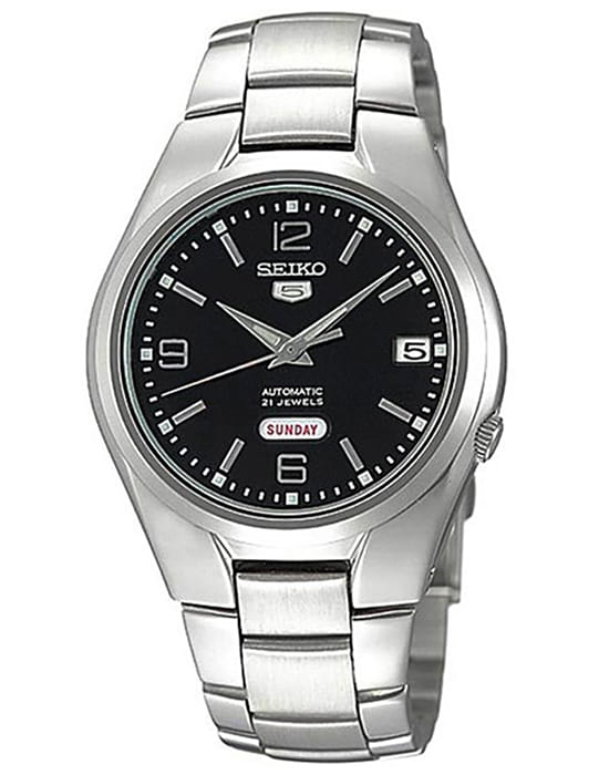 Seiko 5 SNK623K1 — мужская автоматическая модель из классической линейки Seiko 5 Regular, сочетающая практичность и сдержанный дизайн. Корпус диаметром 37 мм и браслет выполнены из нержавеющей стали, создавая универсальный и надёжный образ. Защитную функцию выполняет минеральное стеклоМинеральное стеклоМинеральное стекло представляет собой искусственно выращенный минерал кварца. Такое стекло отличается особой устойчивостью к повреждениям и царапинам. Уступает по некоторым качествам сапфировому стеклу. Hardlex, устойчивое к повседневным повреждениям. В основе модели лежит автоматический калибр 7S26 с функциями часов, минут, секунд, даты и дня недели. Водозащита составляет 30 м, что защищает часы от брызг и дождя. Чёрный циферблат оформлен в лаконичном стиле с арабскими цифрами и стрелками, покрытыми люминесцентным покрытиемЛюминесцентное покрытиеПозволяет считывать показания времени в темноте. Производители наносят на стрелки, часовые индексы, безель или поверхность циферблата светонакопительный состав, дающий холодное свечение. для читаемости в темноте. Браслет из нержавеющей стали оснащён раскладной застёжкойРаскладная застёжкаТакой тип застёжки используется только на браслетах из металла. Она никогда не раскрывается полностью, происходит разделение на 2 и более частей. Раскладывающая застёжка снизит вероятность потери часов к минимуму., обеспечивающей удобство и надёжность при ежедневном использовании.