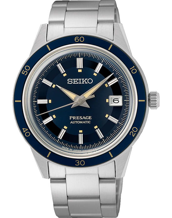 Мужские наручные часы Seiko SRPG05J1 из коллекции Presage Style 60s сочетают в себе классический дизайн и надежность современных технологий. Модель обладает круглым корпусом диаметром 40,8 мм, изготовленным из нержавеющей стали, что обеспечивает высокую устойчивость к внешним воздействиям . Толщина корпуса составляет 12 мм, а для защиты используется минеральное стеклоМинеральное стеклоМинеральное стекло представляет собой искусственно выращенный минерал кварца. Такое стекло отличается особой устойчивостью к повреждениям и царапинам. Уступает по некоторым качествам сапфировому стеклу. Hardlex Crystal, обеспечивающее прочную защиту от царапин . БезельБезельВнешний ободок, закрепляющий стекло. В спортивных часах так называется поворотное кольцо с делениями на циферблате, выполняет роль таймера – замеряет отрезки времени на шкале. Неподвижный безель – элемент декора. Однонаправленно вращающийся безель на дайверских часах позволяет фиксировать моменты погружения и выныривания на поверхность. с PVD-покрытиемPVDУльтратонкое покрытие наносится в технике вакуумного напыления, сочетает в себе нитрид титана особой прочности со слоем золота или оксида хрома. Несёт в себе декоративную или защитную функцию.. Браслет также выполнен из нержавеющей стали с раскладной застежкойРаскладная застёжкаТакой тип застёжки используется только на браслетах из металла. Она никогда не раскрывается полностью, происходит разделение на 2 и более частей. Раскладывающая застёжка снизит вероятность потери часов к минимуму., гарантирующей комфортное ношение . Циферблат глубокого синего цвета украшен текстурой, которая подчеркивает элегантный стиль модели. Часы оснащены функцией отображения даты на позиции «3 часа» . Модель работает на автоматическом механизме с калибром 4R35, который включает 23 камня и обладает запасом хода до 41 часа . Водонепроницаемость составляет WR 50, что позволяет защитить корпус от случайных брызг и кратковременного контакта с водой . Вдохновленные культурой 1960-х годов, эти часы демонстрируют уникальный стиль и внимание к деталям, сохраняя при этом практичность для повседневного использования.