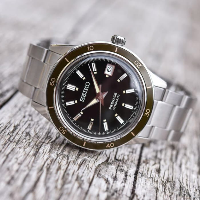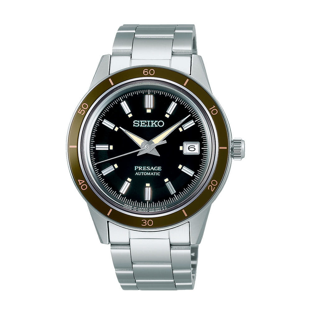 Модель SRPG07J1 из коллекции Seiko Presage Style 60's сочетает винтажный дизайн с современными технологиями. Корпус и браслет выполнены из нержавеющей стали. Надёжный автоматический механизм Seiko 4R35 обеспечивает до 41 часа запаса хода. Циферблат защищён минеральным стекломМинеральное стеклоМинеральное стекло представляет собой искусственно выращенный минерал кварца. Такое стекло отличается особой устойчивостью к повреждениям и царапинам. Уступает по некоторым качествам сапфировому стеклу.. Безель с PVD-покрытиемPVDУльтратонкое покрытие наносится в технике вакуумного напыления, сочетает в себе нитрид титана особой прочности со слоем золота или оксида хрома. Несёт в себе декоративную или защитную функцию. из нержавеющей стали придаёт модели элегантный вид. Установлена раскладная застёжкаРаскладная застёжкаТакой тип застёжки используется только на браслетах из металла. Она никогда не раскрывается полностью, происходит разделение на 2 и более частей. Раскладывающая застёжка снизит вероятность потери часов к минимуму. для надёжной фиксации на запястье.