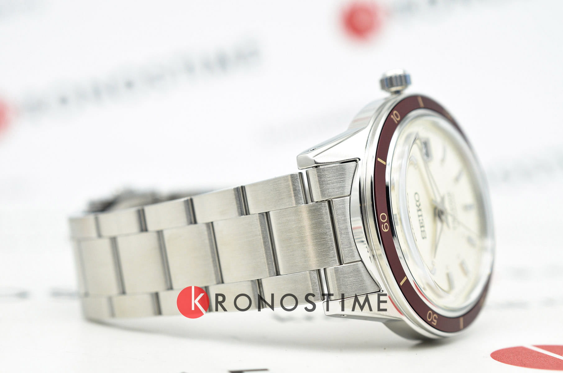 Мужские наручные часы Seiko SRPH93J1 из коллекции Presage Style 60s сочетают в себе классический дизайн и надежность современных технологий. Модель обладает круглым корпусом диаметром 40,8 мм, изготовленным из нержавеющей стали, что обеспечивает высокую устойчивость к внешним воздействиям . Толщина корпуса составляет 12 мм, а для защиты используется минеральное стеклоМинеральное стеклоМинеральное стекло представляет собой искусственно выращенный минерал кварца. Такое стекло отличается особой устойчивостью к повреждениям и царапинам. Уступает по некоторым качествам сапфировому стеклу. Hardlex Crystal, обеспечивающее прочную защиту от царапин . БезельБезельВнешний ободок, закрепляющий стекло. В спортивных часах так называется поворотное кольцо с делениями на циферблате, выполняет роль таймера – замеряет отрезки времени на шкале. Неподвижный безель – элемент декора. Однонаправленно вращающийся безель на дайверских часах позволяет фиксировать моменты погружения и выныривания на поверхность. с PVD-покрытиемPVDУльтратонкое покрытие наносится в технике вакуумного напыления, сочетает в себе нитрид титана особой прочности со слоем золота или оксида хрома. Несёт в себе декоративную или защитную функцию.. Браслет также выполнен из нержавеющей стали с раскладной застежкойРаскладная застёжкаТакой тип застёжки используется только на браслетах из металла. Она никогда не раскрывается полностью, происходит разделение на 2 и более частей. Раскладывающая застёжка снизит вероятность потери часов к минимуму., гарантирующей комфортное ношение . Циферблат бежевого цвета украшен текстурой, которая подчеркивает элегантный стиль модели. Часы оснащены функцией отображения даты на позиции «3 часа» . Модель работает на автоматическом механизме с калибром 4R35, который включает 23 камня и обладает запасом хода до 41 часа . Водонепроницаемость составляет WR 50, что позволяет защитить корпус от случайных брызг и кратковременного контакта с водой . Вдохновленные культурой 1960-х годов, эти часы демонстрируют уникальный стиль и внимание к деталям, сохраняя при этом практичность для повседневного использования.