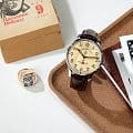 Лимитированные мужские российские механические часы коллекции Гагарин Наследие 42 Штурманские 2416/4005399, механический механизм (автоматический калибр) с высокой точностью. Лимитированная серия - 2000 экземпляров. Класс водозащиты: 50 метров, позволит защитить корпус от случайных брызг или капель дождя. Корпус часов изготовлен из стали. Коричневый кожаный ремешок со стандартной пряжкой подчеркивает утилитарность и практичность модели, ее настоящий мужской характер. Минеральное стеклоМинеральное стеклоМинеральное стекло представляет собой искусственно выращенный минерал кварца. Такое стекло отличается особой устойчивостью к повреждениям и царапинам. Уступает по некоторым качествам сапфировому стеклу. устойчивое к мелким механическим повреждениям. Стрелки и метки с люминесцентным покрытиемЛюминесцентное покрытиеПозволяет считывать показания времени в темноте. Производители наносят на стрелки, часовые индексы, безель или поверхность циферблата светонакопительный состав, дающий холодное свечение.. Дизайн задней крышки модели выполнен в том же стиле – на нем вы увидите барельеф с изображением Юрия Гагарина и надпись "первые часы в космосе" и порядковый номер часов. Работают часы за счет механического калибра Полет 2416. В механизме 31 камень, частота 19800 полуколебаний в час. Запас хода 31 час. Противоударное устройство оси баланса. Предохранительное устройство от перезаводки пружины. Индивидуальная нумерация. Метки в виде арабских цифр.