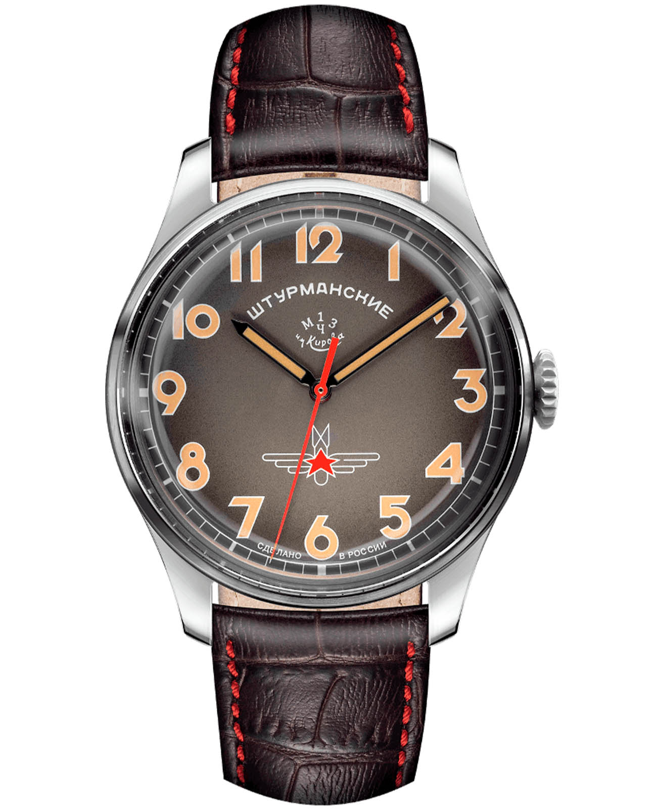 Мужские российские механические часы Штурманские Гагарин Наследие 2609/3747478, механический механизм (автоматический калибр) с высокой точностью. Минеральное стеклоМинеральное стеклоМинеральное стекло представляет собой искусственно выращенный минерал кварца. Такое стекло отличается особой устойчивостью к повреждениям и царапинам. Уступает по некоторым качествам сапфировому стеклу. устойчивое к мелким механическим повреждениям. Класс водозащиты: 30 метров, позволит защитить корпус от случайных брызг или капель дождя. Корпус часов изготовлен из титана. Кожаный ремешок на стандартной застёжке. Стрелки и метки с люминесцентным покрытиемЛюминесцентное покрытиеПозволяет считывать показания времени в темноте. Производители наносят на стрелки, часовые индексы, безель или поверхность циферблата светонакопительный состав, дающий холодное свечение.. Чёткая, читаемая минутная шкала уходит за приделы видимой области циферблата, подчёркивая изящность ободка корпуса. Оцифровка циферблата – отличительная особенность данной модели, её дизайн не изменился с самой первый, гагаринской серии. Заводная головка конической формы с удобной насечкой повторяет дизайн оригинальной модели.