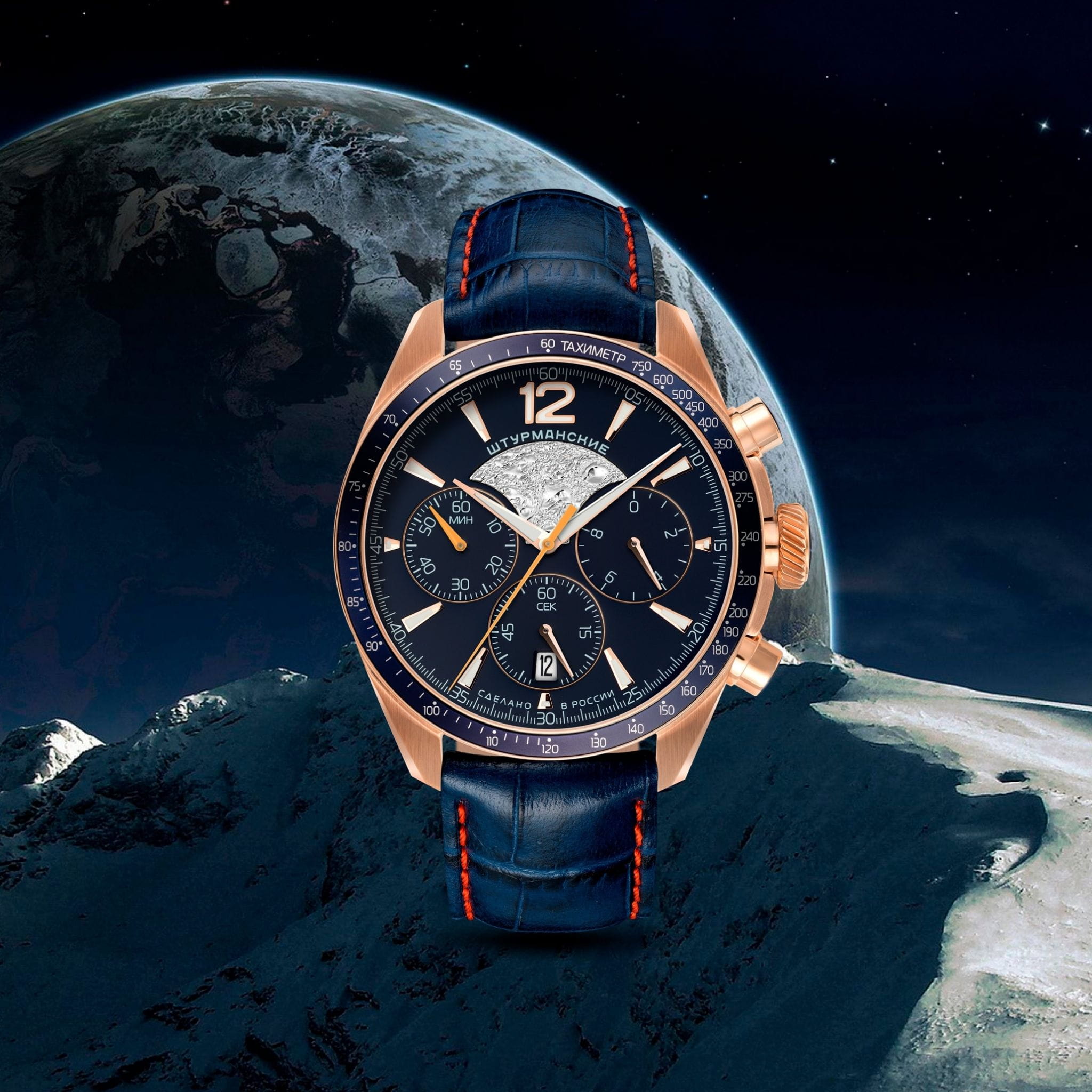 Мужские российские кварцевые часы Штурманские 6S20/4789408, Часы Штурманские из коллекции Луна 25 – это уникальный аксессуар, созданный для настоящих ценителей качественных и стильных часов. Модель воплощает в себе сочетание элегантного дизайна и надежной функциональности. Корпус часов изготовлен из нержавеющей стали PVD-покрытиемPVDУльтратонкое покрытие наносится в технике вакуумного напыления, сочетает в себе нитрид титана особой прочности со слоем золота или оксида хрома. Несёт в себе декоративную или защитную функцию.. БезельБезельВнешний ободок, закрепляющий стекло. В спортивных часах так называется поворотное кольцо с делениями на циферблате, выполняет роль таймера – замеряет отрезки времени на шкале. Неподвижный безель – элемент декора. Однонаправленно вращающийся безель на дайверских часах позволяет фиксировать моменты погружения и выныривания на поверхность. с PVD-покрытиемPVDУльтратонкое покрытие наносится в технике вакуумного напыления, сочетает в себе нитрид титана особой прочности со слоем золота или оксида хрома. Несёт в себе декоративную или защитную функцию.. Минеральное стеклоМинеральное стеклоМинеральное стекло представляет собой искусственно выращенный минерал кварца. Такое стекло отличается особой устойчивостью к повреждениям и царапинам. Уступает по некоторым качествам сапфировому стеклу. защищает циферблат от царапин и повреждений, сохраняя его безупречный внешний вид на протяжении долгого времени. Стрелки часов, выполненные в классическом стиле, имеют люминесцентное покрытие, что обеспечивает удобное считывание времени в условиях низкой освещенности. Класс водозащиты 50 метров, позволит защитить корпус от случайных брызг или капель дождя. Задняя крышка украшена изображением посадочного аппарата Луна-25 на поверхности Луны и крепится на 4-х винтах. Окошко даты находится в положении 6 часов.