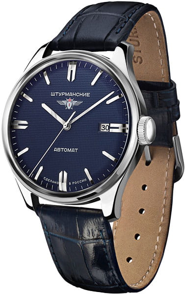 Мужские российские механические часы Штурманские Гагарин Классика 9015/1271570, механический механизм (автоматический калибр) с высокой точностью. Минеральное стеклоМинеральное стеклоМинеральное стекло представляет собой искусственно выращенный минерал кварца. Такое стекло отличается особой устойчивостью к повреждениям и царапинам. Уступает по некоторым качествам сапфировому стеклу. устойчивое к мелким механическим повреждениям. Класс водозащиты: 50 метров, позволит защитить корпус от случайных брызг или капель дождя. Корпус часов изготовлен из стали. Кожаный ремешок на стандартной застёжке. Стрелки и метки с люминесцентным покрытиемЛюминесцентное покрытиеПозволяет считывать показания времени в темноте. Производители наносят на стрелки, часовые индексы, безель или поверхность циферблата светонакопительный состав, дающий холодное свечение.. Чёткая, читаемая минутная шкала уходит за приделы видимой области циферблата, подчёркивая изящность ободка корпуса.