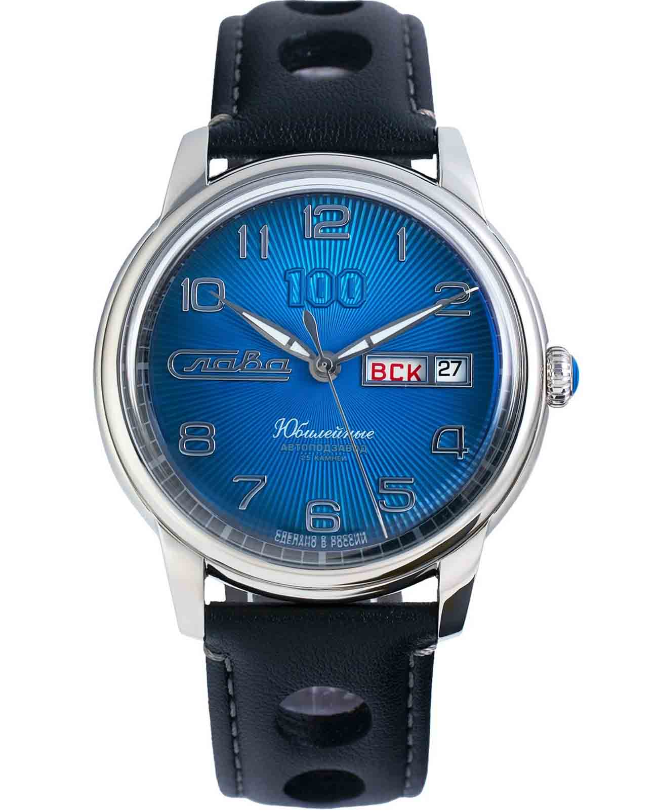 Часы Слава Юбилейные 2600672/300-2427 представляют собой воплощение российского часового искусства, сочетая в себе традиции и современные технологии. Эти механические часы с автоподзаводом оснащены калибром «Слава 2427», который обеспечивает надежную и точную работу. Корпус из высококачественной стали диаметром 44 мм и толщиной 14,5 мм придает часам солидность и долговечность. Циферблат выполнен в благородном синим цвете и оформлен арабскими цифрами, обеспечивая удобство чтения времени. Прочное выпуклое сапфировое стеклоСапфировое стеклоПрочный и надёжный материал из кристалла сапфира синтетического происхождения, характеризующийся особой твёрдостью и устойчивостью к царапинам и повреждениям. защищает циферблат от царапин и повреждений. Особенностью модели является наличие календаря, отображающего число и день недели в положении 3 часа. Стрелки с люминесцентным покрытиемЛюминесцентное покрытиеПозволяет считывать показания времени в темноте. Производители наносят на стрелки, часовые индексы, безель или поверхность циферблата светонакопительный состав, дающий холодное свечение., что облегчает чтение времени даже в условиях слабого освещения. Часы обладают водозащитой уровня 100WR, что делает их подходящими для повседневного ношения и активного образа жизни. Кожаный ремешок с классической застежкой добавляет модели изысканности и комфорта в носке. Эта модель представлена в лимитированной серии из 300 экземпляров, что делает её не только надежным функциональным аксессуаром, но и ценным предметом для коллекционеров. Прозрачная задняя крышка позволяет наблюдать за работой механизма, который включает в себя 25 камней и имеет частоту 18000 полуколебаний в час. Запас хода составляет до 40 часов, а противоударное устройство оси баланса обеспечивает дополнительную надежность.