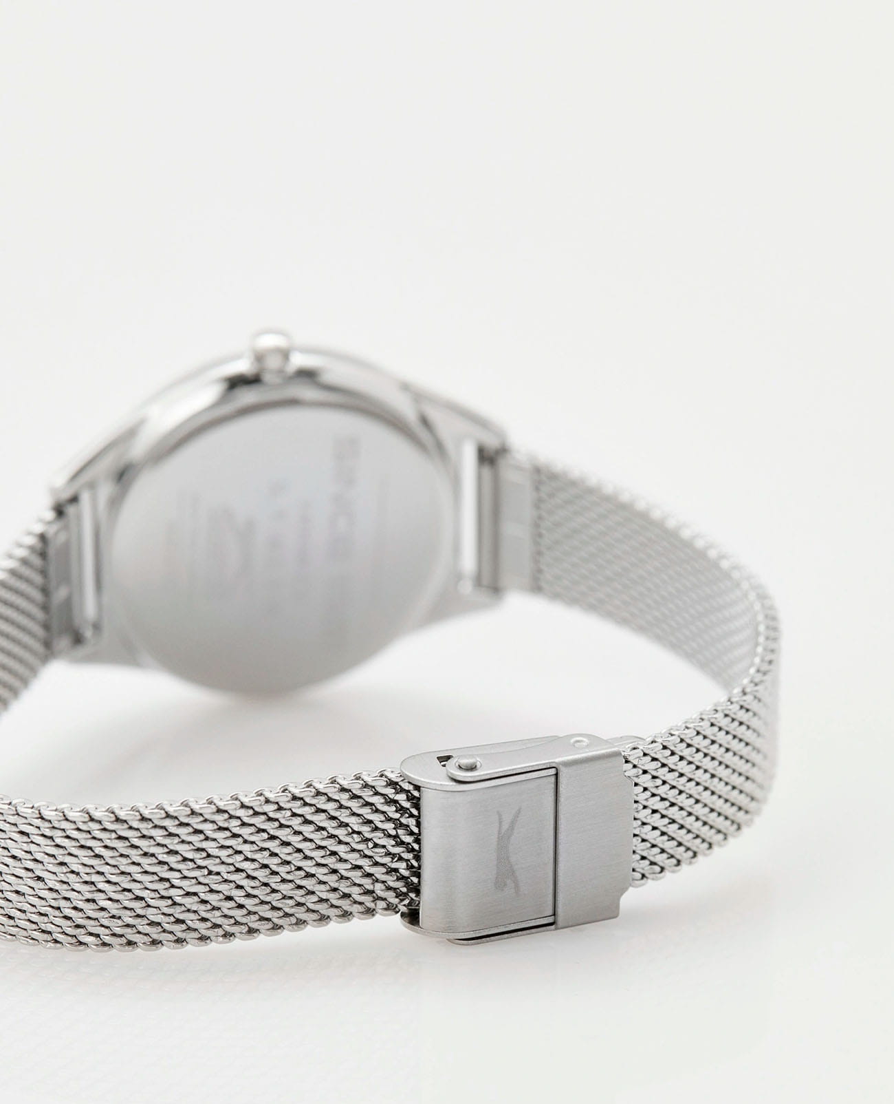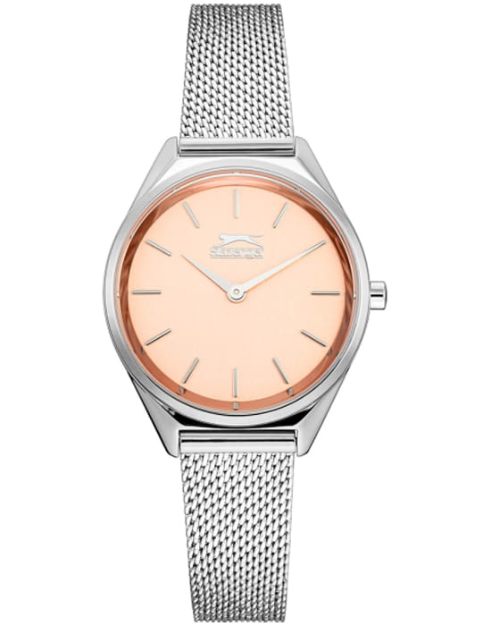 Женские наручные часы Slazenger SL.09.1852.3.06 сочетают в себе элегантный дизайн и надежность современных технологий. Модель обладает круглым корпусом диаметром 32 мм, изготовленным из суперметалла с серебряным покрытием, что обеспечивает высокую устойчивость к внешним воздействиям. Браслет миланского плетения на раскладном замкеРаскладной замокДанный вариант застежки используется только на часах с металлическим браслетом. Отличительная особенность такого крепления в том, что длина браслета становится универсальной и вы можете самостоятельно отрегулировать нужный вам размер – застежка просто двигается по браслету часов., гарантируюет комфортное ношение. Циферблат  оснащен индексами для лучшей читаемости времени. Для защиты используется минеральное стеклоМинеральное стеклоМинеральное стекло представляет собой искусственно выращенный минерал кварца. Такое стекло отличается особой устойчивостью к повреждениям и царапинам. Уступает по некоторым качествам сапфировому стеклу., обеспечивающее прочную защиту от царапин. Часы работают на японском кварцевом механизме, что гарантирует точное время без необходимости подзаводки. Водонепроницаемость часов составляет 3 атмосферы (30 метров), что позволяет использовать их в повседневной жизни, но не рекомендуется для плавания или занятий водными видами спорта.