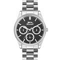 Женские наручные часы Slazenger SL.09.2063.4.01 сочетают в себе классический дизайн и высокое качество исполнения. Модель обладает круглым корпусом диаметром 36 мм, изготовленным из суперметалла с серебристым покрытием, что обеспечивает устойчивость к внешним воздействиям. Браслет выполнен из суперметалла на раскладной застёжкеРаскладная застёжкаТакой тип застёжки используется только на браслетах из металла. Она никогда не раскрывается полностью, происходит разделение на 2 и более частей. Раскладывающая застёжка снизит вероятность потери часов к минимуму.. Черный циферблат украшен логотипом бренда и метками времени. Имеются дополнительные малые циферблаты для отображения даты, дня недели и текущего времени в 24-часовом формате. Для защиты используется минеральное стеклоМинеральное стеклоМинеральное стекло представляет собой искусственно выращенный минерал кварца. Такое стекло отличается особой устойчивостью к повреждениям и царапинам. Уступает по некоторым качествам сапфировому стеклу., обеспечивающее прочную защиту от царапин. Стрелки и метки имеют люминесцентное покрытиеЛюминесцентное покрытиеПозволяет считывать показания времени в темноте. Производители наносят на стрелки, часовые индексы, безель или поверхность циферблата светонакопительный состав, дающий холодное свечение., что позволяет легко читать время в темноте. Часы работают на японском кварцевом механизме, который обеспечивает точность хода без необходимости подзаводки. Водонепроницаемость часов составляет 3 атмосферы (WR30), что позволяет защитить корпус от случайных брызг или капель дождя.
