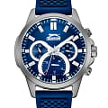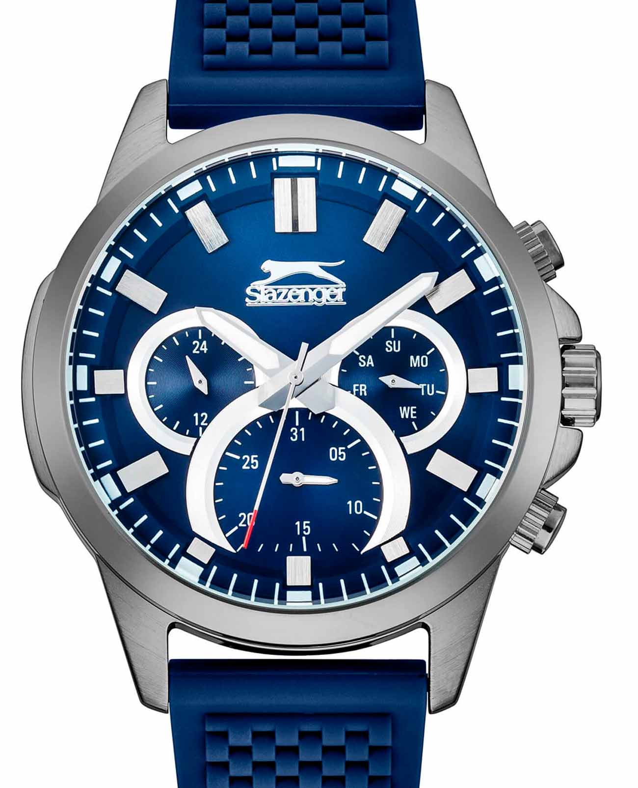 Мужские наручные часы Slazenger SL.09.2083.2.04 сочетают в себе современный дизайн и функциональность. Модель обладает круглым корпусом диаметром 45 мм, изготовленным из суперметалла, что обеспечивает высокую устойчивость к внешним воздействиям. Браслет выполнен из синего силикона шириной 2.2 см с классической застежкой, гарантирующей комфортное ношение и безопасность. Синий циферблат оснащен малыми циферблатами для отображения даты, дня недели и текущего времени в 24-х часовом формате второй часовой поясВторой часовой поясФункция, позволяющая отображать время двух часовых поясов одновременно.. Для защиты используется минеральное стеклоМинеральное стеклоМинеральное стекло представляет собой искусственно выращенный минерал кварца. Такое стекло отличается особой устойчивостью к повреждениям и царапинам. Уступает по некоторым качествам сапфировому стеклу., обеспечивающее прочную защиту от царапин. Стрелки имеют люминесцентное покрытие люминесцентное покрытиеЛюминесцентное покрытиеПозволяет считывать показания времени в темноте. Производители наносят на стрелки, часовые индексы, безель или поверхность циферблата светонакопительный состав, дающий холодное свечение., облегчающее чтение времени в темноте. Часы работают на кварцевом механизме, что гарантирует точное время без необходимости подзаводки. Модель также имеет класс водонепроницаемости WR50 (5 атм), что позволяет использовать их во время плавания без ныряния. Толщина корпуса составляет 12 мм, делая эти часы подходящими для повседневного использования благодаря своему стильному дизайну и надёжности материалов.