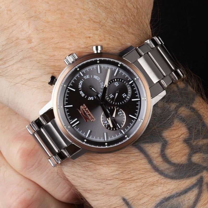 Часы Slazenger SL.09.2213.2.02 представляют собой элегантное сочетание британского стиля и современных технологий, создавая идеальный аксессуар для мужчин, которые ценят как функциональность, так и внешний вид. Эта модель оснащена кварцевым механизмом, обеспечивающим точность хода и долговечность. Корпус часов, выполненный из прочного суперметалла, имеет круглую форму и диаметр 44 мм, что придает им классический и универсальный вид, а безельБезельВнешний ободок, закрепляющий стекло. В спортивных часах так называется поворотное кольцо с делениями на циферблате, выполняет роль таймера – замеряет отрезки времени на шкале. Неподвижный безель – элемент декора. Однонаправленно вращающийся безель на дайверских часах позволяет фиксировать моменты погружения и выныривания на поверхность. с розово-золотистым IP-покрытиемIP-покрытиеМетод ионного напыления. Демонстрирует повышенную устойчивость к истиранию, окислению и химическим веществам. Под воздействием высокого давления и температуры около 1500°C молекулы металла надёжно соединяются с частицами корпуса часов.. Минеральное стеклоМинеральное стеклоМинеральное стекло представляет собой искусственно выращенный минерал кварца. Такое стекло отличается особой устойчивостью к повреждениям и царапинам. Уступает по некоторым качествам сапфировому стеклу. защищает циферблат, устойчивый к царапинам и повреждениям, а его черный цвет добавляет оригинальности и строгости образу. Серебристый браслет, также изготовленный из суперметалла, обеспечивает комфорт и надежную фиксацию на запястье, подчеркивая стиль владельца, он оснащён раскладной застёжкойРаскладная застёжкаТакой тип застёжки используется только на браслетах из металла. Она никогда не раскрывается полностью, происходит разделение на 2 и более частей. Раскладывающая застёжка снизит вероятность потери часов к минимуму. с системой блокировки, обеспечивая надёжную фиксацию на запястье. Часы обладают степенью водозащиты WR 50 (5 ATM), что позволяет использовать их в различных условиях, не опасаясь за их сохранность. Люминесцентное покрытиеЛюминесцентное покрытиеПозволяет считывать показания времени в темноте. Производители наносят на стрелки, часовые индексы, безель или поверхность циферблата светонакопительный состав, дающий холодное свечение. обеспечивает удобное считывание времени в темноте, а часовые индексы на циферблате делают отображение времени четким и понятным. Модель также оснащена функцией отображения даты, добавляя практичности и удобства в повседневной жизни. Этот аксессуар прекрасно подойдет для деловых встреч, повседневного ношения или особых случаев, сочетая в себе стиль и функциональность.