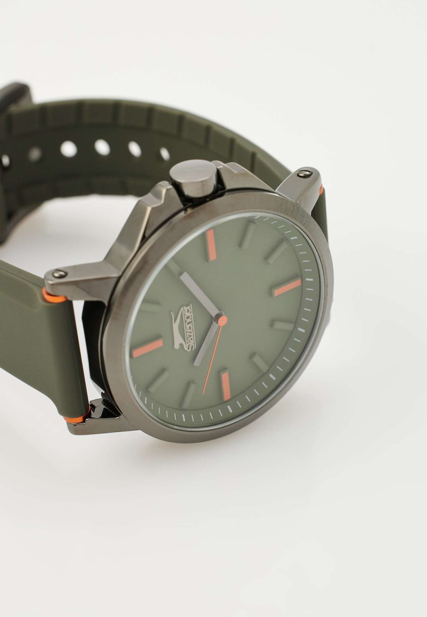 Стильные наручные часы Slazenger SL.09.2220.1.02 сочетают современный дизайн и практичность для повседневного использования. Крупный корпус диаметром 48 мм выполнен из прочного металла IP-покрытиемIP-покрытиеМетод ионного напыления. Демонстрирует повышенную устойчивость к истиранию, окислению и химическим веществам. Под воздействием высокого давления и температуры около 1500°C молекулы металла надёжно соединяются с частицами корпуса часов., а минеральное стеклоМинеральное стеклоМинеральное стекло представляет собой искусственно выращенный минерал кварца. Такое стекло отличается особой устойчивостью к повреждениям и царапинам. Уступает по некоторым качествам сапфировому стеклу. обеспечивает дополнительную защиту темно-зеленого циферблата от царапин. Модель оснащена надежным кварцевым механизмом и имеет водозащиту класса WR 50, что позволяет не снимать часы при мытье рук или во время дождя. Ремешок цвета хаки из мягкого и долговечного силикона удобно сидит на запястье и фиксируется классической застежкой. Часы весят всего 86 грамм, что делает их комфортными для ежедневной носки. Заводная головка оснащена защитой, что предотвращает случайное повреждение. Эта модель станет надежным и стильным аксессуаром для тех, кто ценит качество и функциональность.