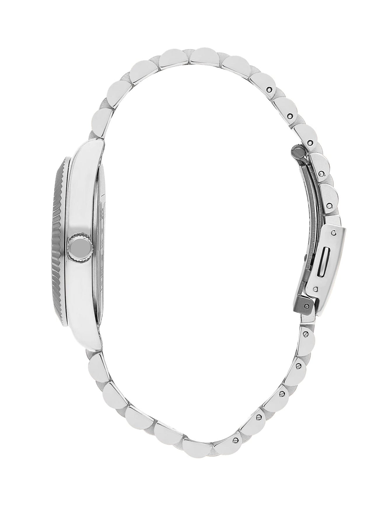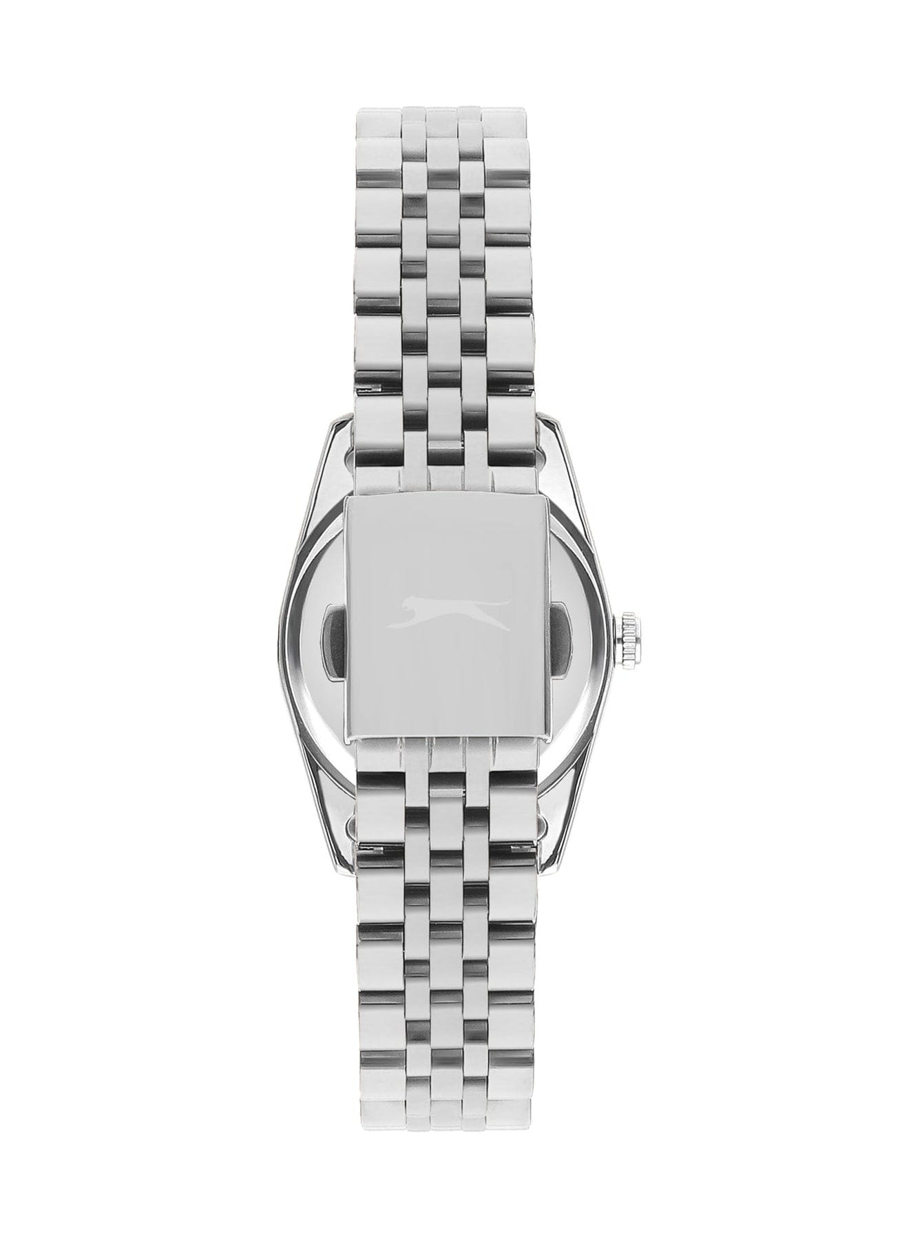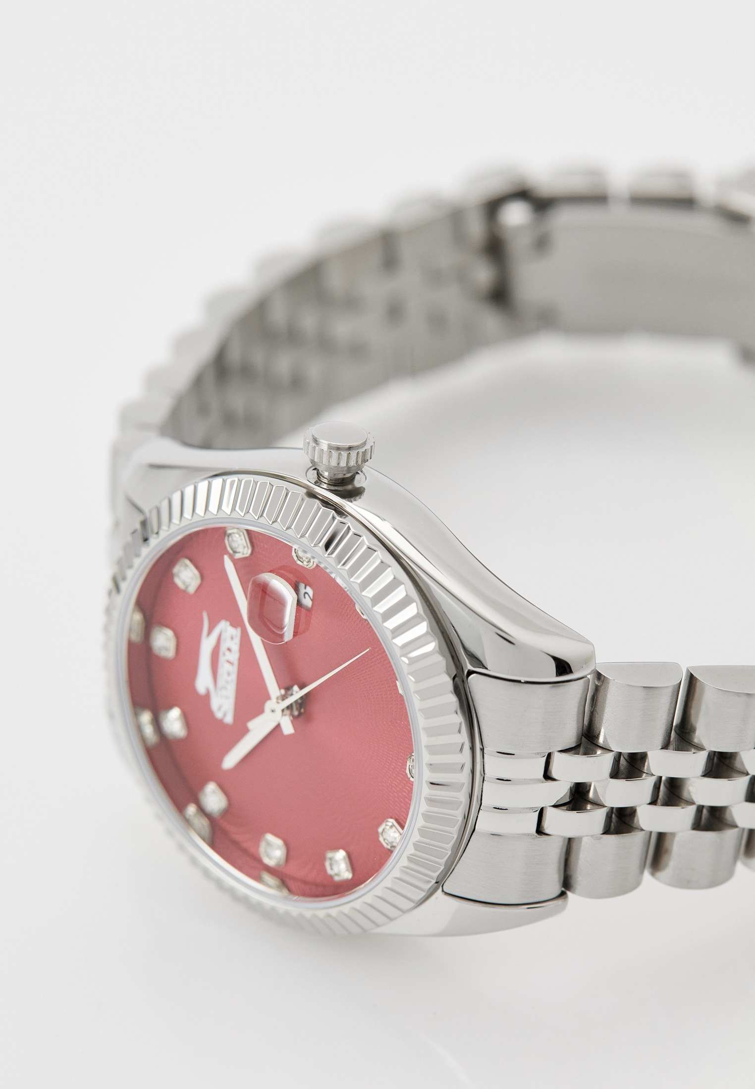 Эти женские часы Slazenger SL.09.2240.3.04 сочетают стильный дизайн и практичность. Корпус, браслет и рифленый безельБезельВнешний ободок, закрепляющий стекло. В спортивных часах так называется поворотное кольцо с делениями на циферблате, выполняет роль таймера – замеряет отрезки времени на шкале. Неподвижный безель – элемент декора. Однонаправленно вращающийся безель на дайверских часах позволяет фиксировать моменты погружения и выныривания на поверхность. выполнены из прочного металла серебристого цвета, что придает аксессуару элегантный и современный вид. Бордовый циферблат украшен кристаллами, что добавляет часам изысканности и утонченности, также он дополнен функцией календаря, отображающей число месяца. Модель оснащена кварцевым механизмом, который обеспечивает точность хода, а также функцией отображения даты с увеличительным стеклом для удобства просмотра. Минеральное стеклоМинеральное стеклоМинеральное стекло представляет собой искусственно выращенный минерал кварца. Такое стекло отличается особой устойчивостью к повреждениям и царапинам. Уступает по некоторым качествам сапфировому стеклу. защищает циферблат от царапин, водозащита уровня WR 30 позволяет выдерживать случайные брызги воды. Удобная раскладная застёжкаРаскладная застёжкаТакой тип застёжки используется только на браслетах из металла. Она никогда не раскрывается полностью, происходит разделение на 2 и более частей. Раскладывающая застёжка снизит вероятность потери часов к минимуму. обеспечивает надежную фиксацию на запястье. Диаметр корпуса составляет 32 мм, ширина браслета — 16 мм, толщина корпуса — 9 мм, вес часов — 80 граммов. В комплект входит фирменная упаковка, инструкция на русском языке и гарантийный талон. Гарантия на изделие составляет 1 год.