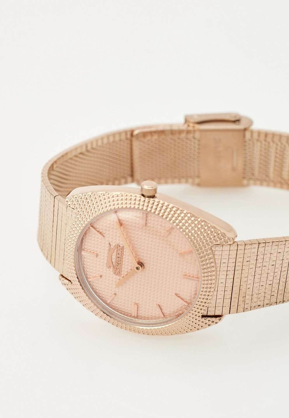 Часы Slazenger SL.09.2261.3.02 — это утонченное сочетание современного дизайна и классической элегантности. Изделие оснащено надежным кварцевым механизмом, который обеспечивает точность хода и простоту эксплуатации. Корпус из суперметалла с розово-золотистым IP-покрытиемIP-покрытиеМетод ионного напыления. Демонстрирует повышенную устойчивость к истиранию, окислению и химическим веществам. Под воздействием высокого давления и температуры около 1500°C молекулы металла надёжно соединяются с частицами корпуса часов. гармонично сочетается с металлическим браслетом аналогичного оттенка и покрытия, подчеркивая изысканность аксессуара и его актуальность в модных тенденциях. Золотистый розовый циферблат украшен изысканным гильоше Clous de Paris и дополнен лаконичными метками в виде штрихов, а также фирменным логотипом бренда. Минеральное стеклоМинеральное стеклоМинеральное стекло представляет собой искусственно выращенный минерал кварца. Такое стекло отличается особой устойчивостью к повреждениям и царапинам. Уступает по некоторым качествам сапфировому стеклу. надежно защищает циферблат от случайных царапин. Диаметр корпуса составляет 34 мм, толщина — 8 мм, ширина браслета — 18 мм, а вес часов — всего 54 г, благодаря чему аксессуар удобно сидит на запястье. Стальной браслет c раскладным замкомРаскладной замокДанный вариант застежки используется только на часах с металлическим браслетом. Отличительная особенность такого крепления в том, что длина браслета становится универсальной и вы можете самостоятельно отрегулировать нужный вам размер – застежка просто двигается по браслету часов. удобно фиксируется на запястье и подчёркивает современный характер часов. Водозащита 30WR позволяет не беспокоиться о случайных брызгах. Модель отличается отсутствием секундной стрелки и оснащена рифленой заводной головкой для легкой корректировки времени. Эти часы станут стильным завершением любого образа, подчеркивая индивидуальность и чувство вкуса обладателя.