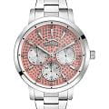 Женские кварцевые часы Slazenger SL.09.2299.3.01 — это элегантный и функциональный аксессуар, сочетающий стиль и надёжность. Корпус и браслет выполнены из суперметалла, защищён минеральным стекломМинеральное стеклоМинеральное стекло представляет собой искусственно выращенный минерал кварца. Такое стекло отличается особой устойчивостью к повреждениям и царапинам. Уступает по некоторым качествам сапфировому стеклу.. Циферблат розового цвета украшен фианитами, придающими модели изысканное сияние. Часы оснащены вынесенными малыми циферблатами для индикации дня недели, даты и времени в 24-часовом формате. Браслет фиксируется на раскладной застёжкеРаскладная застёжкаТакой тип застёжки используется только на браслетах из металла. Она никогда не раскрывается полностью, происходит разделение на 2 и более частей. Раскладывающая застёжка снизит вероятность потери часов к минимуму., обеспечивая удобство и надёжность ношения. Водонепроницаемость 30 м позволяет использовать часы в повседневных условиях, защищая от случайных брызг и капель дождя. Модель подчёркивает женственность и индивидуальность, идеально подходя как для повседневного, так и для торжественного образа.