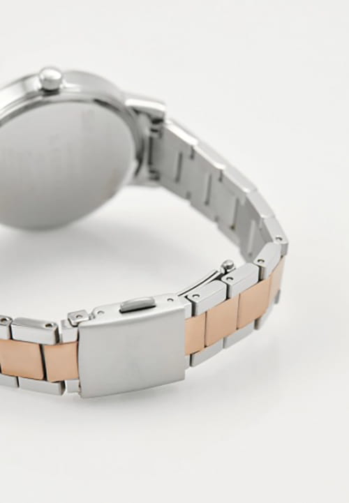 Женские кварцевые часы Slazenger SL.09.2299.3.05 — это элегантный и функциональный аксессуар, сочетающий стиль и надёжность. Корпус и браслет выполнены из суперметалла с IP-покрытиемIP-покрытиеМетод ионного напыления. Демонстрирует повышенную устойчивость к истиранию, окислению и химическим веществам. Под воздействием высокого давления и температуры около 1500°C молекулы металла надёжно соединяются с частицами корпуса часов., защищён минеральным стекломМинеральное стеклоМинеральное стекло представляет собой искусственно выращенный минерал кварца. Такое стекло отличается особой устойчивостью к повреждениям и царапинам. Уступает по некоторым качествам сапфировому стеклу.. Циферблат белого цвета украшен фианитами, придающими модели изысканное сияние. Часы оснащены вынесенными малыми циферблатами для индикации дня недели, даты и времени в 24-часовом формате. Браслет фиксируется на раскладной застёжкеРаскладная застёжкаТакой тип застёжки используется только на браслетах из металла. Она никогда не раскрывается полностью, происходит разделение на 2 и более частей. Раскладывающая застёжка снизит вероятность потери часов к минимуму., обеспечивая удобство и надёжность ношения. Водонепроницаемость 30 м позволяет использовать часы в повседневных условиях, защищая от случайных брызг и капель дождя. Модель подчёркивает женственность и индивидуальность, идеально подходя как для повседневного, так и для торжественного образа.
