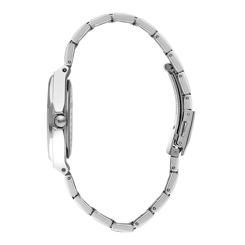 Женские кварцевые часы Slazenger SL.09.2306.3.06 — это элегантный и стильный аксессуар, идеально дополняющий любой образ. Корпус и браслет выполнены из суперметалла, защищён минеральным стекломМинеральное стеклоМинеральное стекло представляет собой искусственно выращенный минерал кварца. Такое стекло отличается особой устойчивостью к повреждениям и царапинам. Уступает по некоторым качествам сапфировому стеклу.. Циферблат бирюзового цвета оформлен в классическом стиле, стрелки оснащены люминесцентным покрытиемЛюминесцентное покрытиеПозволяет считывать показания времени в темноте. Производители наносят на стрелки, часовые индексы, безель или поверхность циферблата светонакопительный состав, дающий холодное свечение., обеспечивающим хорошую читаемость в темноте. Заводная головка снабжена защитой для повышения надёжности. Браслет из суперметалла фиксируется на раскладной застёжкеРаскладная застёжкаТакой тип застёжки используется только на браслетах из металла. Она никогда не раскрывается полностью, происходит разделение на 2 и более частей. Раскладывающая застёжка снизит вероятность потери часов к минимуму., обеспечивая удобство и безопасность ношения. Водонепроницаемость 30 м позволяет использовать часы в повседневных условиях, защищая от случайных брызг и капель дождя. Модель сочетает в себе лёгкость, прочность и изысканный внешний вид.