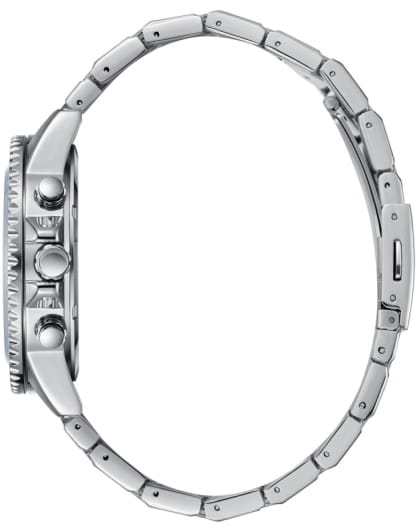 Мужские кварцевые часы Slazenger — это выразительный и функциональный аксессуар. Корпус диаметром 44 мм и толщиной 13 мм выполнен из суперметалла. БезельБезельВнешний ободок, закрепляющий стекло. В спортивных часах так называется поворотное кольцо с делениями на циферблате, выполняет роль таймера – замеряет отрезки времени на шкале. Неподвижный безель – элемент декора. Однонаправленно вращающийся безель на дайверских часах позволяет фиксировать моменты погружения и выныривания на поверхность. из суперметалла с IP-покрытиемIP-покрытиеМетод ионного напыления. Демонстрирует повышенную устойчивость к истиранию, окислению и химическим веществам. Под воздействием высокого давления и температуры около 1500°C молекулы металла надёжно соединяются с частицами корпуса часов.. Циферблат синего цвета оформлен индексами и стрелками. Циферблат защищён минеральным стекломМинеральное стеклоМинеральное стекло представляет собой искусственно выращенный минерал кварца. Такое стекло отличается особой устойчивостью к повреждениям и царапинам. Уступает по некоторым качествам сапфировому стеклу.. Механизм — кварцевый калибр. Часы оснащены индикацией дня недели, даты и 12/24-часового формата времени. Окошко даты расположено между 4 и 5 часами. Часы оснащены браслетом из суперметалла с раскладной застёжкойРаскладная застёжкаТакой тип застёжки используется только на браслетах из металла. Она никогда не раскрывается полностью, происходит разделение на 2 и более частей. Раскладывающая застёжка снизит вероятность потери часов к минимуму.. Водонепроницаемость 100 м позволяет использовать часы для плавания и повседневного ношения. Гарантия — 12 месяцев. Идеальный выбор для тех, кто ценит стиль, функциональность и качество.