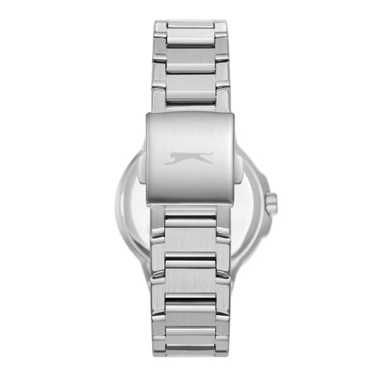 Женские кварцевые часы Slazenger — это выразительный и функциональный аксессуар. Корпус диаметром 36 мм и толщиной 9,5 мм выполнен из суперметалла. Циферблат серебристого цвета оформлен индексами и стрелками. Циферблат защищён минеральным стекломМинеральное стеклоМинеральное стекло представляет собой искусственно выращенный минерал кварца. Такое стекло отличается особой устойчивостью к повреждениям и царапинам. Уступает по некоторым качествам сапфировому стеклу.. Механизм — кварцевый. Часы оснащены индикацией дня недели, даты и 12/24-часового формата времени. Часы оснащены браслетом из суперметалла с раскладной застёжкойРаскладная застёжкаТакой тип застёжки используется только на браслетах из металла. Она никогда не раскрывается полностью, происходит разделение на 2 и более частей. Раскладывающая застёжка снизит вероятность потери часов к минимуму.. Водонепроницаемость 50 м позволяет использовать часы в повседневных условиях. Гарантия — 12 месяцев. Идеальный выбор для тех, кто ценит стиль, функциональность и качество.