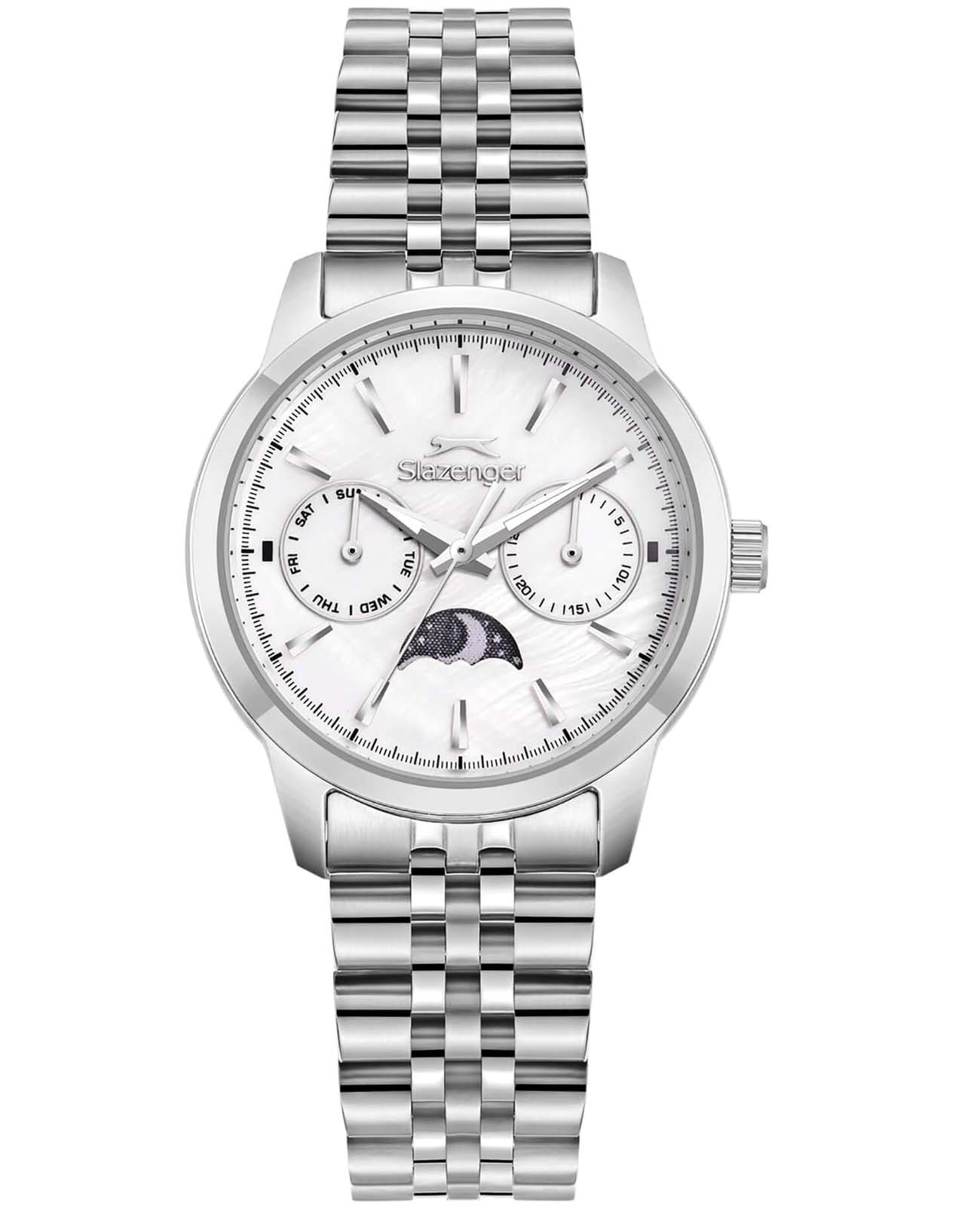 Часы Slazenger SL.09.2462.4.01 станут элегантным дополнением вашего образа. Изящный серебристый циферблат заключен в корпус диаметром 33 мм, выполненный из прочного суперметалла. Эти женские часы оснащены надежным кварцевым механизмом и защищены от воды на уровне 5 АТМ, что делает их подходящими для повседневного использования. Стальной браслет на застёжке-бабочке с кнопкамиЗастёжка "бабочка"Такой вид застёжки дополняется предохранителями, помогающими избежать случайного раскрытия браслета. Обладают изящным исполнением. обеспечивает комфортное прилегание на запястье. Минеральное стеклоМинеральное стеклоМинеральное стекло представляет собой искусственно выращенный минерал кварца. Такое стекло отличается особой устойчивостью к повреждениям и царапинам. Уступает по некоторым качествам сапфировому стеклу. гарантирует защиту от царапин. Стрелки с люминесцентным покрытиемЛюминесцентное покрытиеПозволяет считывать показания времени в темноте. Производители наносят на стрелки, часовые индексы, безель или поверхность циферблата светонакопительный состав, дающий холодное свечение., также есть функции: дата, день недели, индикатор день/ночь.