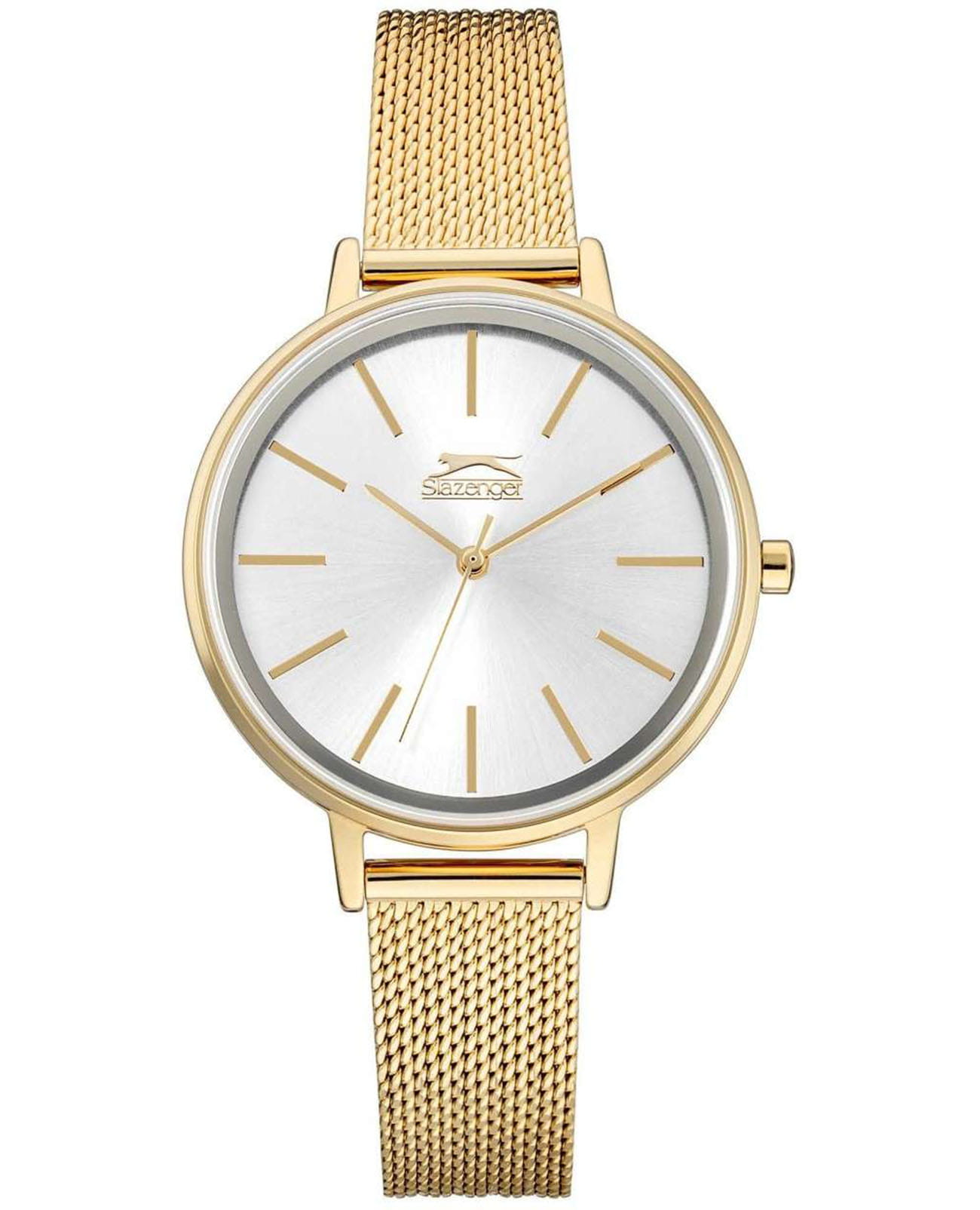 Женские кварцевые часы Slazenger — это элегантный аксессуар с браслетом миланского плетения. Корпус диаметром 38 мм и толщиной 9 мм выполнен из суперметалла с IP-покрытиемIP-покрытиеМетод ионного напыления. Демонстрирует повышенную устойчивость к истиранию, окислению и химическим веществам. Под воздействием высокого давления и температуры около 1500°C молекулы металла надёжно соединяются с частицами корпуса часов.. Циферблат серебристого цвета оформлен индексами и стрелками. Циферблат защищён минеральным стекломМинеральное стеклоМинеральное стекло представляет собой искусственно выращенный минерал кварца. Такое стекло отличается особой устойчивостью к повреждениям и царапинам. Уступает по некоторым качествам сапфировому стеклу.. Механизм — кварцевый калибр Miyota 2035. Часы оснащены браслетом из суперметалла миланского плетения с раскладной застёжкойРаскладная застёжкаТакой тип застёжки используется только на браслетах из металла. Она никогда не раскрывается полностью, происходит разделение на 2 и более частей. Раскладывающая застёжка снизит вероятность потери часов к минимуму.. Водонепроницаемость 30 м позволяет использовать часы в повседневных условиях. Идеальный выбор для тех, кто ценит стиль и качество.