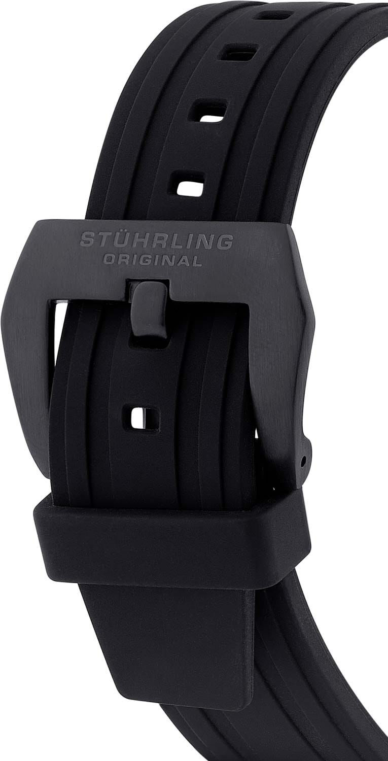 Stuhrling 984.01 — эффектные мужские часы с ярким спортивным характером и футуристичным дизайном. Корпус из нержавеющей стали с чёрным PVD-покрытиемPVDУльтратонкое покрытие наносится в технике вакуумного напыления, сочетает в себе нитрид титана особой прочности со слоем золота или оксида хрома. Несёт в себе декоративную или защитную функцию. придаёт модели выразительный матовый оттенок и повышенную устойчивость к царапинам. Циферблат выполнен в виде стилизованного ротора, где акценты насыщенного цвета создают ощущение движения и энергии. Прочный силиконовый ремешок обеспечивает комфорт и долговечность, а стекло KrysternaKrysternaKrysterna — инновационное стекло для наручных часов. Благодаря уникальной структуре, Krysterna объединяет ключевые преимущества двух материалов: твердость сапфира, защищающую от царапин, и гибкость минерального стекла, обеспечивающую устойчивость к деформациям. Такая комбинация делает его идеальным решением для часов, подверженных экстремальным нагрузкам, сохраняя при этом оптическую прозрачность. надёжно защищает поверхность от повреждений. Stuhrling — часы для тех, кто выбирает технологичный стиль и мощную эстетику в каждой детали.