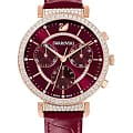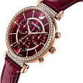 Изысканные швейцарские часы-хронографХронографФункция позволяет измерять отрезки времени с особой точностью: часы, минуты, секунды. Верным признаком хронографа является наличие на циферблате 3 дополнительных окошек-счётчиков. с секундомеромСекундомерСекундоме́р — прибор, способный измерять интервалы времени с точностью до долей секунды. Swarovski 5580345 подчеркнут вашу женственность и элегантность. Эти часы обладают кварцевым механизмом, обеспечивающим точность хода. Корпус выполнен из стали с розово-золотистым PVDPVDУльтратонкое покрытие наносится в технике вакуумного напыления, сочетает в себе нитрид титана особой прочности со слоем золота или оксида хрома. Несёт в себе декоративную или защитную функцию. покрытием, что придает им утонченный вид, а бордовый циферблат создает дерзкий акцент. Особое внимание привлекают кристаллы Swarovski, которые украшают как и безельБезельВнешний ободок, закрепляющий стекло. В спортивных часах так называется поворотное кольцо с делениями на циферблате, выполняет роль таймера – замеряет отрезки времени на шкале. Неподвижный безель – элемент декора. Однонаправленно вращающийся безель на дайверских часах позволяет фиксировать моменты погружения и выныривания на поверхность. с розово-золотистым PVDPVDУльтратонкое покрытие наносится в технике вакуумного напыления, сочетает в себе нитрид титана особой прочности со слоем золота или оксида хрома. Несёт в себе декоративную или защитную функцию. покрытием, так и циферблат, добавляя блеска и лоска. Кожаный ремешок с классической застежкой обеспечивает комфортное ношение и легкость замены, что позволяет легко адаптировать часы к вашему настроению и стилю. Эти часы с водозащитой 50WR подойдут для повседневного использования, а минеральное стеклоМинеральное стеклоМинеральное стекло представляет собой искусственно выращенный минерал кварца. Такое стекло отличается особой устойчивостью к повреждениям и царапинам. Уступает по некоторым качествам сапфировому стеклу. защитит их от царапин. Диаметр корпуса составляет 36 мм, а длина ремешка – 190 мм, что делает их удобными и подходящими для любой женской руки. Эти часы не просто аксессуар, а настоящее произведение искусства, способное стать ярким акцентом любого образа.