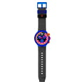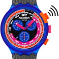 Часы Swatch SB06N101-5300 — это стильный и современный аксессуар для тех, кто ценит лёгкость и комфорт. Часы идеально подойдут как для мужчин, так и для женщин. Эти часы напоминают коллекционную модель Swatch CHRONO из 90-х: GRAND PRIX (SCJ101). Часы с характерным дизайном и яркой кнопкой хронографаХронографФункция позволяет измерять отрезки времени с особой точностью: часы, минуты, секунды. Верным признаком хронографа является наличие на циферблате 3 дополнительных окошек-счётчиков. на двух часах – это идеальные часы, чтобы достичь неожиданных побед. На их необычайно красочном неоновом циферблате с ярко-синим корпусом шкала тахиметраТахиметрРазмеченная шкала, располагается на ободке или безеле часов. Тахиметр позволяет рассчитать скорость на определённом участке пути, расстояние измеряется в километрах или милях..  На часовую, минутную стрелки розового цвета нанесено люминесцентное покрытиеЛюминесцентное покрытиеПозволяет считывать показания времени в темноте. Производители наносят на стрелки, часовые индексы, безель или поверхность циферблата светонакопительный состав, дающий холодное свечение., которое светится в темноте, создавая необычное изображение. Эти часы имеют NFC модуль, поэтому это несомненно лучший способ оплачивать покупки. Водозащита 30 метров делает часы практичными для повседневного использования. Эти часы подойдут для повседневного ношения и станут ярким акцентом в вашем наряде.