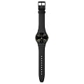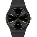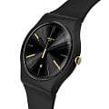 Часы Swatch SO29B403 —  эффектный и надежный аксессуар. Современный взгляд на классику. Эти часы имеют черный циферблат с золотыми индексами и черными стрелками часов и минут, которые светятся в темноте, так как имеют люминесцентное покрытиеЛюминесцентное покрытиеПозволяет считывать показания времени в темноте. Производители наносят на стрелки, часовые индексы, безель или поверхность циферблата светонакопительный состав, дающий холодное свечение.. Корпус и стекло из биоматериала. Матовый черный ремешок из биоматериала с соответствующей петлей и пряжкой завершает их неповторимый вид. Внутри часов установлен надежный кварцевый механизм, который обеспечивает точность хода. Эти часы водонепроницаемы до 30 метров, что позволяет не беспокоиться о случайных брызгах или дождевых каплях. Swatch SO29B403 — это идеальный выбор для тех, кто ценит сочетание стиля, комфорта и функциональности в одном аксессуаре.