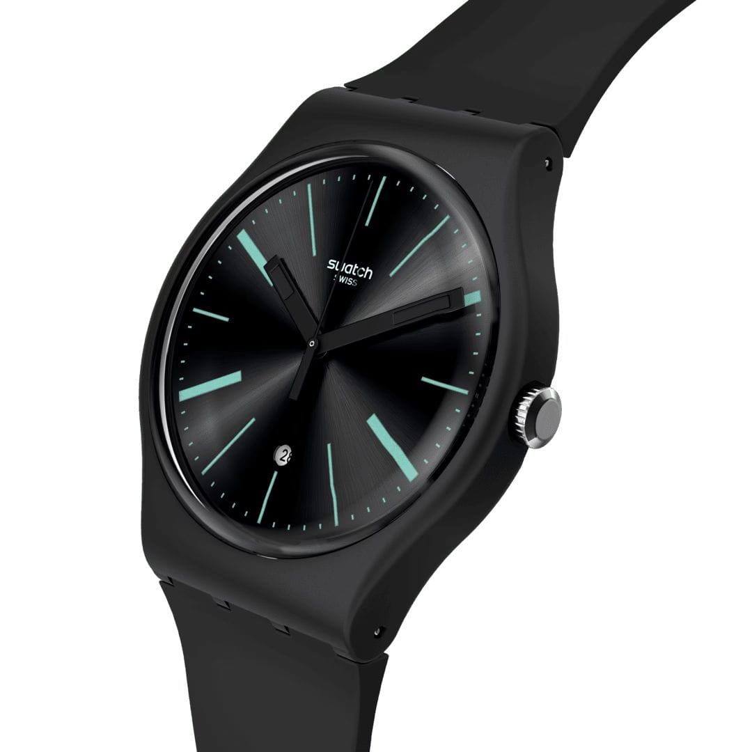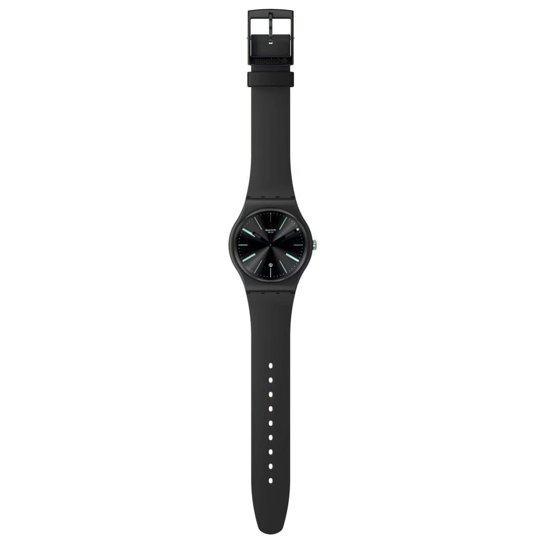 Часы Swatch SO29B404 —  эффектный и надежный аксессуар. Современный взгляд на классику. Эти часы имеют черный циферблат со светло-зелеными индексами и черными стрелками часов и минут, которые светятся в темноте, так как имеют люминесцентное покрытиеЛюминесцентное покрытиеПозволяет считывать показания времени в темноте. Производители наносят на стрелки, часовые индексы, безель или поверхность циферблата светонакопительный состав, дающий холодное свечение.. Корпус и стекло из биоматериала. Окошко даты расположено на 6 часов. Матовый черный ремешок из биоматериала с соответствующей петлей и пряжкой завершает их неповторимый вид. Внутри часов установлен надежный кварцевый механизм, который обеспечивает точность хода. Эти часы водонепроницаемы до 30 метров, что позволяет не беспокоиться о случайных брызгах или дождевых каплях. Swatch SO29B404 — это идеальный выбор для тех, кто ценит сочетание стиля, комфорта и функциональности в одном аксессуаре.