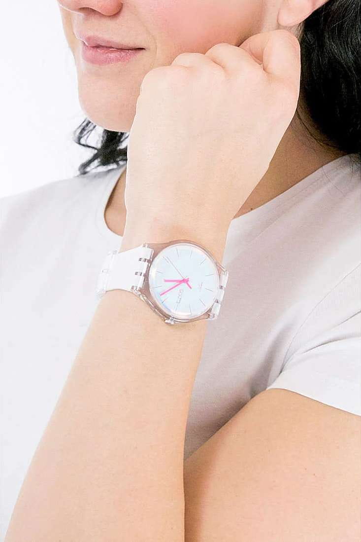 Часы Swatch SO29K704-S14 — стильный и надежный аксессуар. Эти часы имеют белый циферблат с розовыми индексами и стекло Solar Spectrum. У них прозрачный корпус из биоматериала, а также белый ремешок и петля. Окошко даты и дня недели с розовыми буквами на уровне 3 часов. Ремешок из силикона на стандартной застёжке. Внутри часов установлен надежный кварцевый механизм, который обеспечивает точность хода. Эти часы водонепроницаемы до 30 метров, что позволяет не беспокоиться о случайных брызгах или дождевых каплях. Swatch SO29K704-S14 — это идеальный выбор для тех, кто ценит сочетание стиля, комфорта и функциональности в одном аксессуаре.