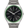 Часы Swatch SS07S128G — это стильный и современный аксессуар для тех, кто ценит лёгкость и комфорт. Часы идеально подойдут как для мужчин, так и для женщин. Эти сверхтонкие часы из нержавеющей стали никогда не утратят своей актуальности. Черный циферблат с радиальной полировкой, зеленым принтом и серебристыми накладными индексами Swatch прекрасно смотрится на фоне матированного корпуса этой изящной модели. Элегантный браслет дополнен застёжкой «бабочка»Застёжка "бабочка"Такой вид застёжки дополняется предохранителями, помогающими избежать случайного раскрытия браслета. Обладают изящным исполнением. . На часовую, минутную стрелки розового цвета нанесено люминесцентное покрытиеЛюминесцентное покрытиеПозволяет считывать показания времени в темноте. Производители наносят на стрелки, часовые индексы, безель или поверхность циферблата светонакопительный состав, дающий холодное свечение., которое светится в темноте, создавая необычное изображение. Водозащита 30 метров делает часы практичными для повседневного использования. Эти часы подойдут для повседневного ношения и станут ярким акцентом в вашем наряде.