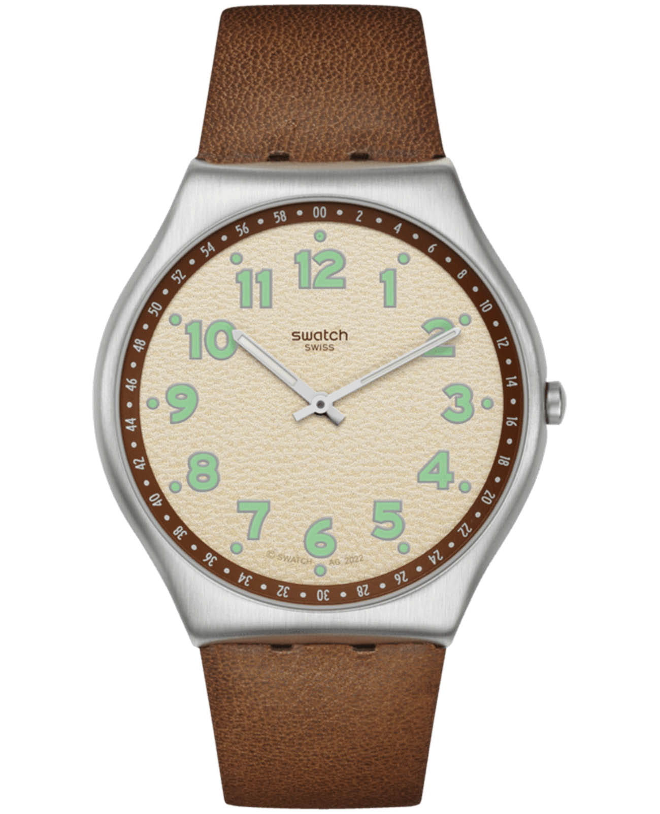 Часы Swatch SS07S135 — это стильный и современный аксессуар для тех, кто ценит лёгкость и комфорт. Часы идеально подойдут как для мужчин, так и для женщин. Эти ультратонкие часы из нержавеющей стали неподвластны времени. Бежевый циферблат со светящимися в темноте из-за люминесцентного покрытияЛюминесцентное покрытиеПозволяет считывать показания времени в темноте. Производители наносят на стрелки, часовые индексы, безель или поверхность циферблата светонакопительный состав, дающий холодное свечение. цифрами, точками и стрелками создает разительный контраст с корпусом из матовой нержавеющей стали. Коричневый кожаный ремешок и пряжка придают модели нотку классической элегантности. Водозащита 30 метров делает часы практичными для повседневного использования. Эти часы подойдут для повседневного ношения и станут ярким акцентом в вашем наряде.