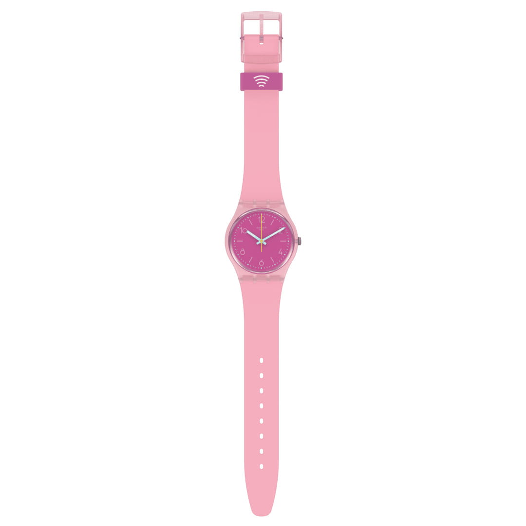 Часы Swatch SVHP101-5300 — это стильный и современный аксессуар для тех, кто ценит лёгкость и комфорт. Часы идеально подойдут как для мужчин, так и для женщин. Эти часы имеют NFC модуль, поэтому это несомненно лучший способ оплачивать покупки. Красивая нежно-розовая модель имеет прозрачный ярко-розовый циферблат с разноцветным принтом и элементами, особенно выделяются голубые стрелки, светящиеся в темноте благодаря люминесцентному покрытиюЛюминесцентное покрытиеПозволяет считывать показания времени в темноте. Производители наносят на стрелки, часовые индексы, безель или поверхность циферблата светонакопительный состав, дающий холодное свечение.. Водозащита 30 метров делает часы практичными для повседневного использования. Эти часы подойдут для повседневного ношения и станут ярким акцентом в вашем наряде.